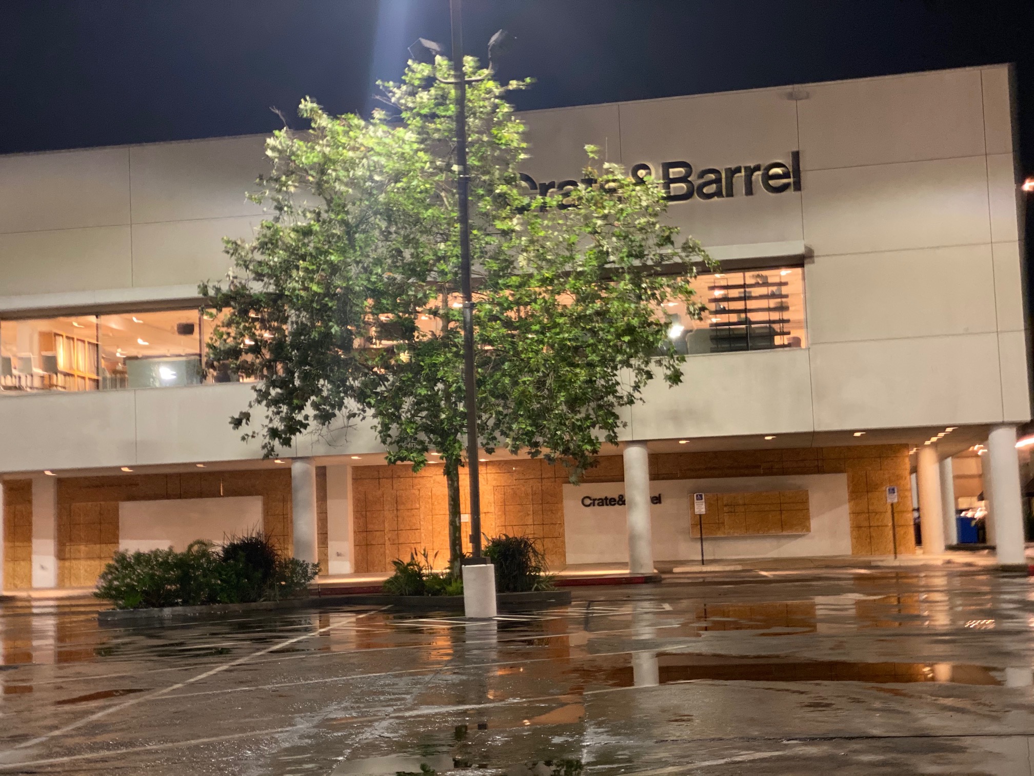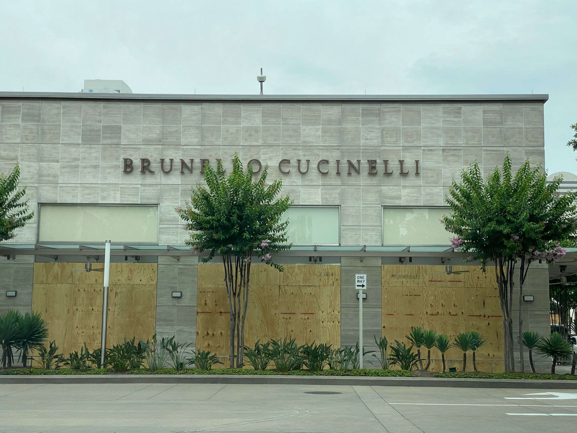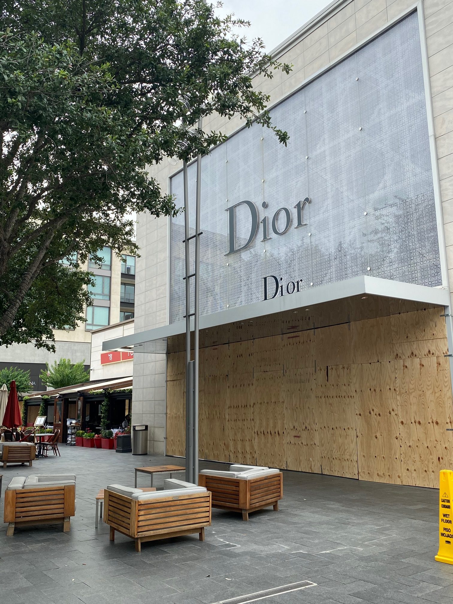 Sunday night, as we drove through Highland Village, we found that Apple, Sephora, Lulumon, J Crew, Crate & Barrel and Madewell were secured behind acres of plywood.