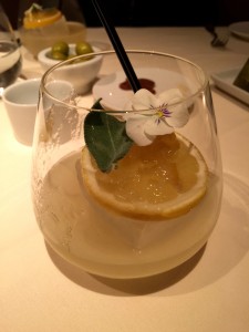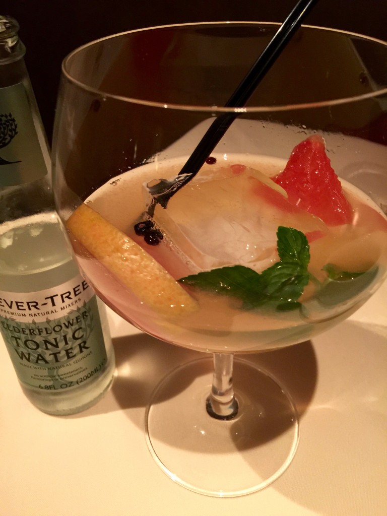 A small cube of compressed watermelon served on a spoon stimulated our palates, while the pan con tomato (that stupendously simple dish of bread, olive oil and tomatoes, served here with jamón Ibérico) provided a nutty richness. A shrimp and mushroom course missed the mark for me — the duxelles was fine, but the consistency and mouthfeel of the “ravioli” disappointed — and the suckling pig lacked a desired tenderness and depth, but those were the exceptions.