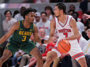 That’s how Baylor finds itself down 71-46 with arguably the most talented player on the floor in its freshman guard VJ Edgecombe, an expected NBA Lottery pick, hitting every shot he manages to get up and the Bears shooting 60 percent from three for the game overall. Rushing to try and get into its offense before UH’s defense can get set up, Baylor commits 15 turnovers even playing with an all guard lineup at times. And Houston’s relentless matchup hunting helps turn those 15 turnovers into 28 points.
