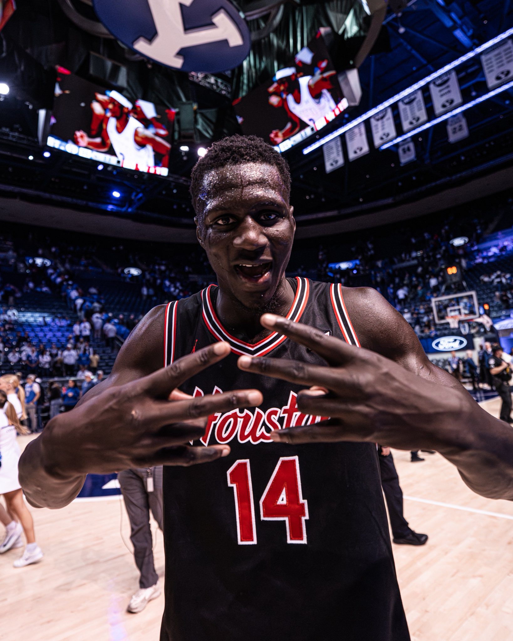 BY Chris Baldwin //Milos Uzan, Kelvin Sampson and the Coogs stared down a wall of BYU fans. (@HCougarMBK)