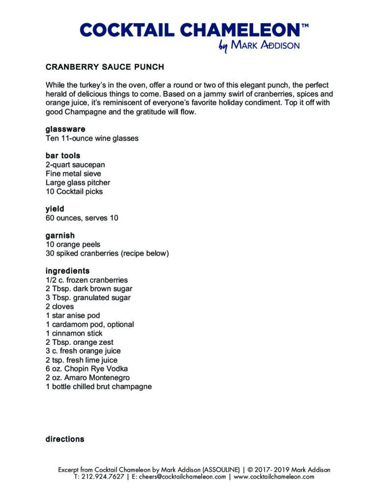 Cranberry Sauce Punch: While the turkey’s in the oven, offer a round or two of this elegant punch — the perfect herald of delicious things to come. Based on a jammy swirl of cranberries, spices, and orange juice, it’s reminiscent of everyone’s favorite holiday condiment. Top it off with good champagne, and the gratitude will flow. Recipe, click here.