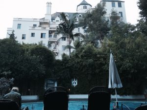 We lived by the pool or on our patio smoking cigarettes and otherwise down at the Bar Marmont. Of course, we had numerous outfit changes for all three spots. Our playlist included Led Zeppelin (“Hey Hey” – I got a woman stay drunk all the time), 1980s old school rap and the classic tune from the ’90s — Bran Van 3000s “Drinking in L.A.”