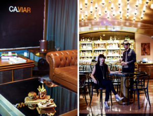 Solomon describes Rambler’s concept as “analog — from the music we play to the way we approach cocktails.” The long barrel-vaulted room is enveloped in rich leather, brass, mica, copper and walnut. “Chad and I really wanted the room to be elegant and approachable, but not feel too polished,” says Pope, who, like Solomon, has a music background that includes working for a record label and stints as a DJ. For Rambler, the duo put their film and music backgrounds to work, borrowing details from the most legendary bars in the world, real and imagined. The ceiling was inspired by Café Silencio in Paris, created and designed by director David Lynch. Channeling Max’s Kansas City — the Manhattan gathering spot for artists, musicians and Warhol’s fashion set during the ’60s and ’70s — a DJ spins from a pedestal made from a working vintage speaker from that era, while a vast collection of vintage albums is displayed like art. And, the lighted mica behind the two bar areas that illuminates vast seas of bottles is straight from The Shining, says Solomon. “We really loved that bar from the movie and wanted to give Midnight Rambler a ’60s cinematic feel with Kubrick’s framing.”