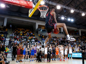 One with a dynamic personality that came through in that dunk contest. Moore is aware and appreciative of slam dunk history enough to come out in a Vince Carter Raptors jersey — and end the dunk with his arm halfway through the net. He’s athletic enough to pull off an insane double tap dunk. And he’s creative enough to make his final dunk one where he’s jumping over another tall human, who is attempting to Instagram Live the whole thing, and then catching an alley-oop pass with one hand and slamming it through while grabbing the rim with his other hand.
