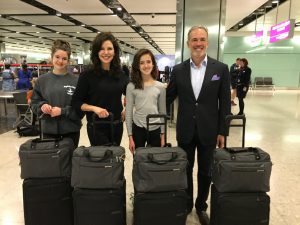 Preferred luggage: Tumi for my checked luggage. I also have an expandable Longchamp duffel for carry-on and an extra Longchamp duffel I pack in my suitcase to hold whatever I purchase on our trip, and then I check it on the way home.”