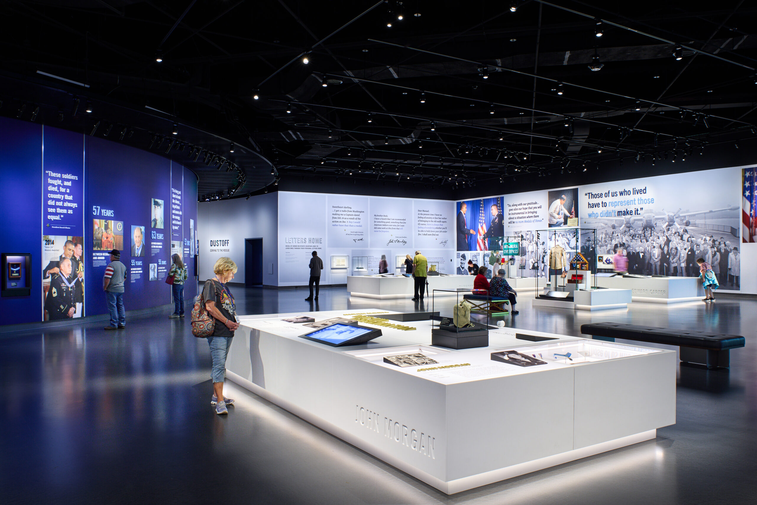 Visitors to the elevated museum first pass through an immersive circular theater, where a six-minute film captures the real-life stories of several Medal of Honor recipients. Cinematic vignettes depict battle scenes from major U.S. conflicts, while the narration highlights the sacrifices made by service members over more than a century and a half.