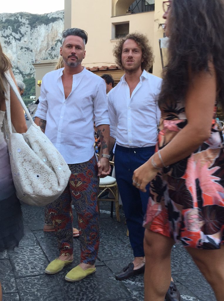 Hats are obviously de rigueur, particularly of the Panama variety, as are the ubiquitous Capri sandal (an island industry in itself), the more embellished, the better. Beyond that, it appears that anything goes from sidewalk-sweeping skirts to eye-popping short shorts. One popular look is the revealing sheer bikini cover-up. We’re not certain if these femmes were straight from an outing to the Blue Grotto or a poolside siesta but they were assuredly not walking in the footsteps of once-upon-a-time Capri regulars and fashion icons Jackie Kennedy Onassis, Audrey Hepburn and Grace Kelly.