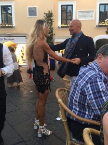 As day gives way to evening, the swans and the gents trade their day-at-the-beach looks for dressier fashion terrain. For men, shorts are replaced with slacks and linen shirts or jeans and the crisp white shirt, perhaps a blazer for the dandies. Women dress for the occasion of the night be it a jeweler’s all-white party, a cocktail fete or partying at the storied Taverna Anema e Core.
