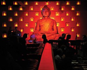 Past the rickshaw in the foyer and Tara, the imposing Buddhist tantric meditation deity, you’ll enter a Shangri-la conjured by Viviana Blandeau. She and owners Piran Esfahani and PJ Jamea have taken the 6,000-square-foot space back to the rafters to reveal the original brick walls and roof trusses, creating an opium-den-like space with rooms on different levels. In the main bar, Geisha girls etched with pigment sticks line the back wall, ushering patrons to try a blue blushing dragon or white orchid cocktail ($12 each).