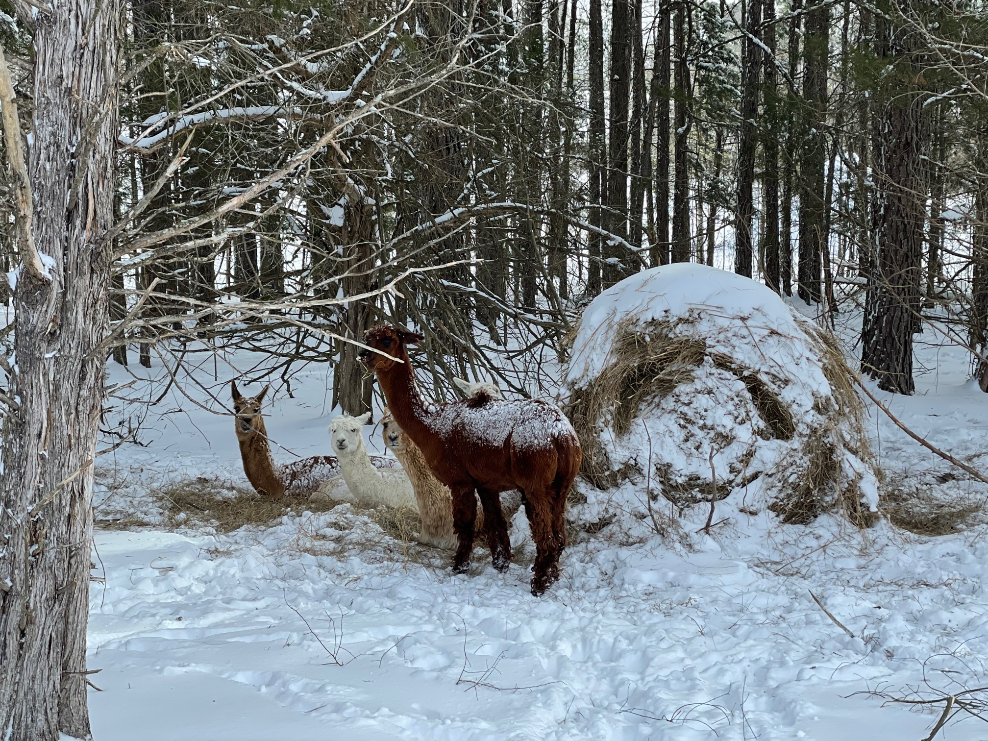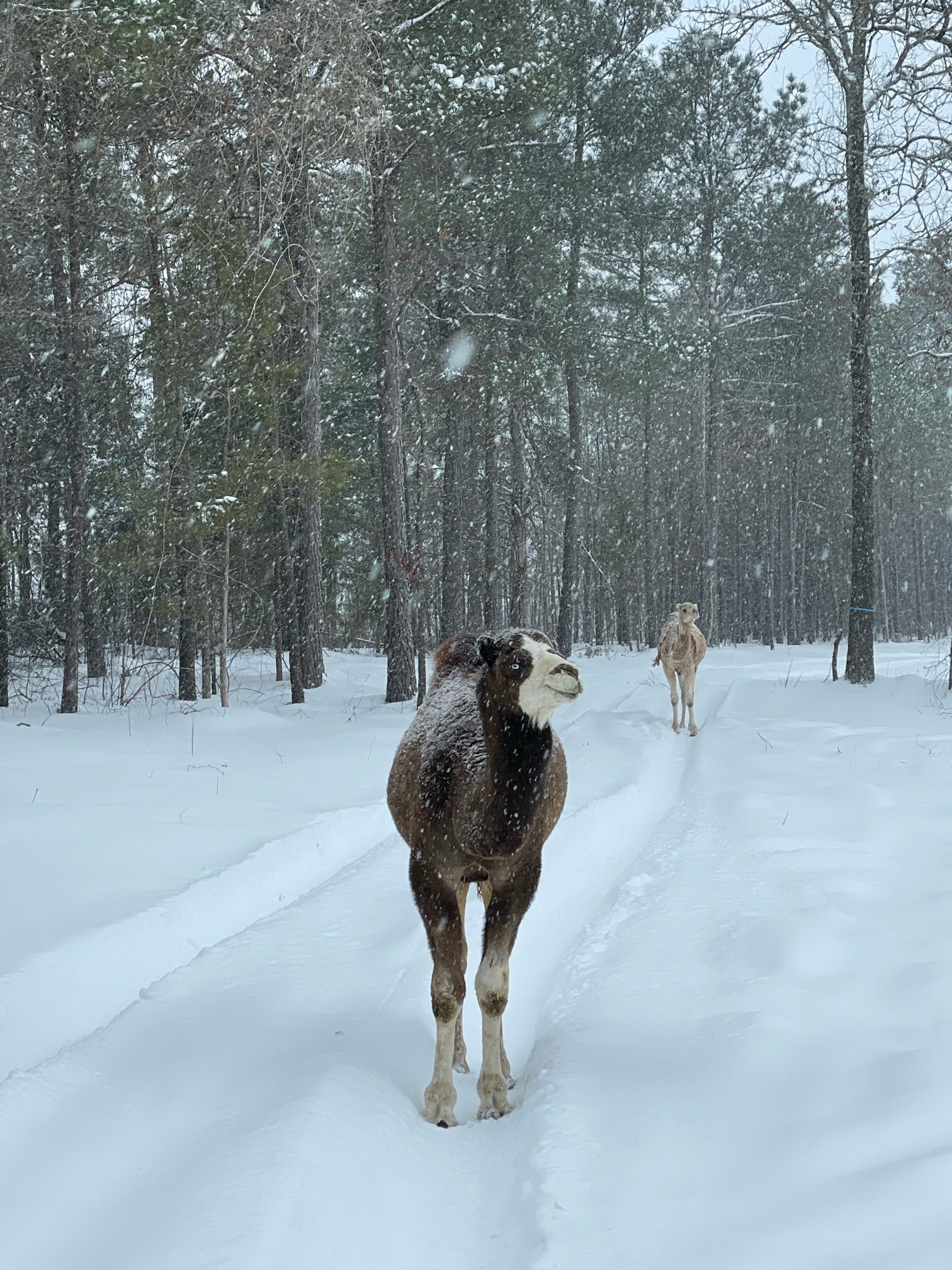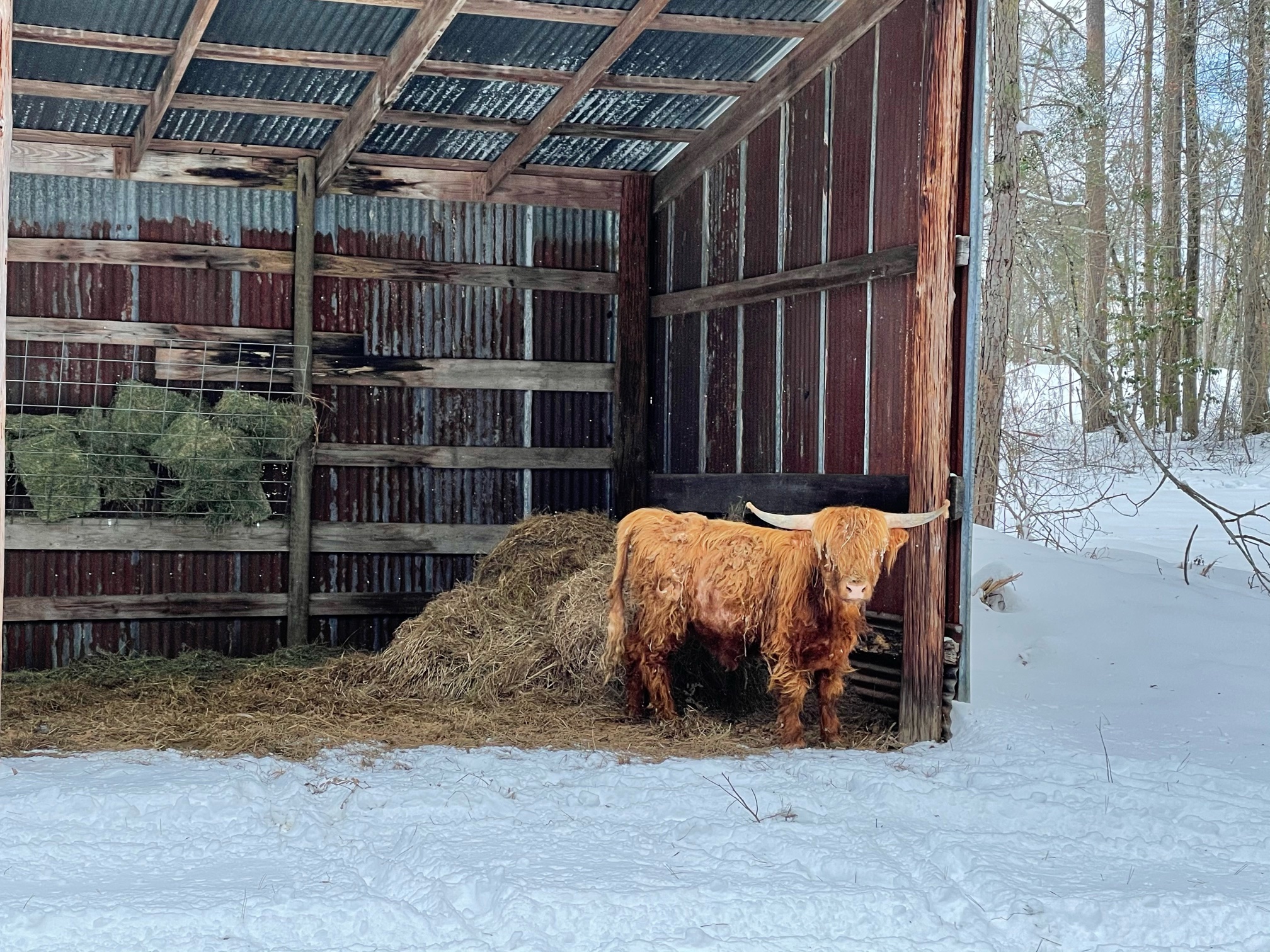 “Countless hours prior to the storm preparing, buying extra feed, securing shelters, talking to experts who’ve lost their animals and not making the same mistakes,” Moody continues. “Busting water three times a day. Making beds in the woods because some of the animals won’t use sheds. Pouring extra feed out all over on top of beds of hay so the animals can find it. . .