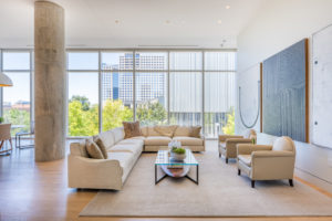 The 17,000-square-foot amenity level features private wine storage, a resort-style lap pool, fitness studio, private dog park with grooming station and even a putting green. Residents of this exclusive building get to enjoy a full-service indoor and outdoor kitchen, access to private dining and entertainment spaces — plus all the services and amenities from the adjacent Hall Arts Hotel.