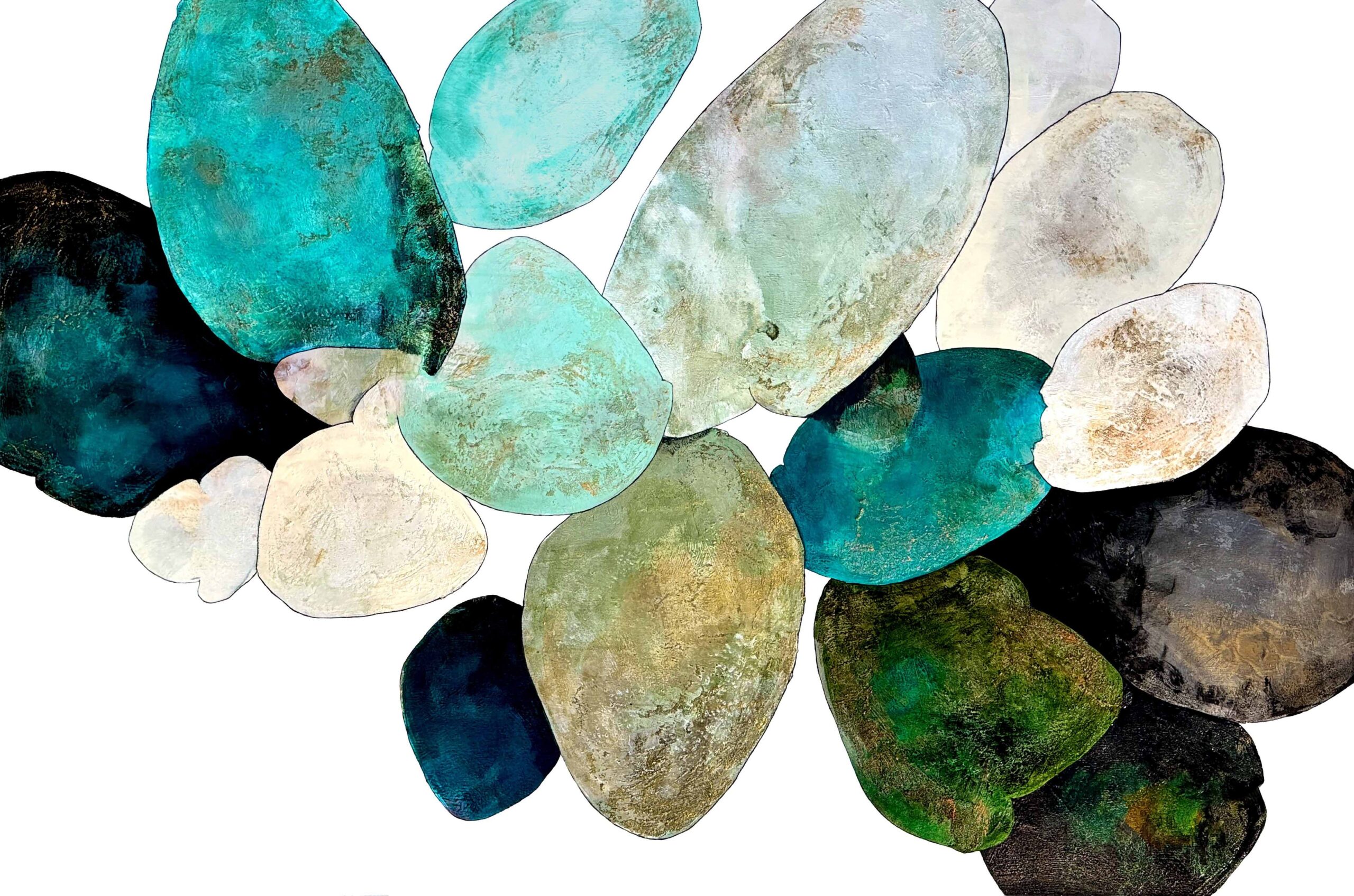 Houston, TX – Laura Rathe Fine Art (LRFA) artist Meredith Pardue introduces Stones that Learned to Breathe, an opulent collection of new large scale paintings that merge the solidity of natural minerals and gemstones with the ephemeral quality of breath. Pardue wildly layers hues ranging from bold, commanding jewel tones to subtle, opalescent, washes reflecting actual fragments of light from the surface, as if each stone holds a quiet, living presence. Chromatic arrangements ensconced within overlapping, densely textured forms vibrate inside dramatic compositions that seem to expand beyond the boundaries of the canvas.