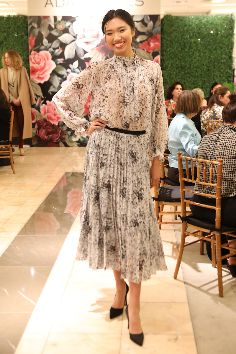 While they lunched on dainty food from the store’s Mariposa restaurant, the New York-based designer wowed them with the same feminine looks that captured attention in New York.