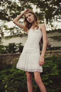 “It’s been fun to see Abby develop from a gawky, shy, but exceptionally photogenic 12-year-old to a self-assured, beautiful young woman,” says Tammy Theis, Wallflower’s creative director.