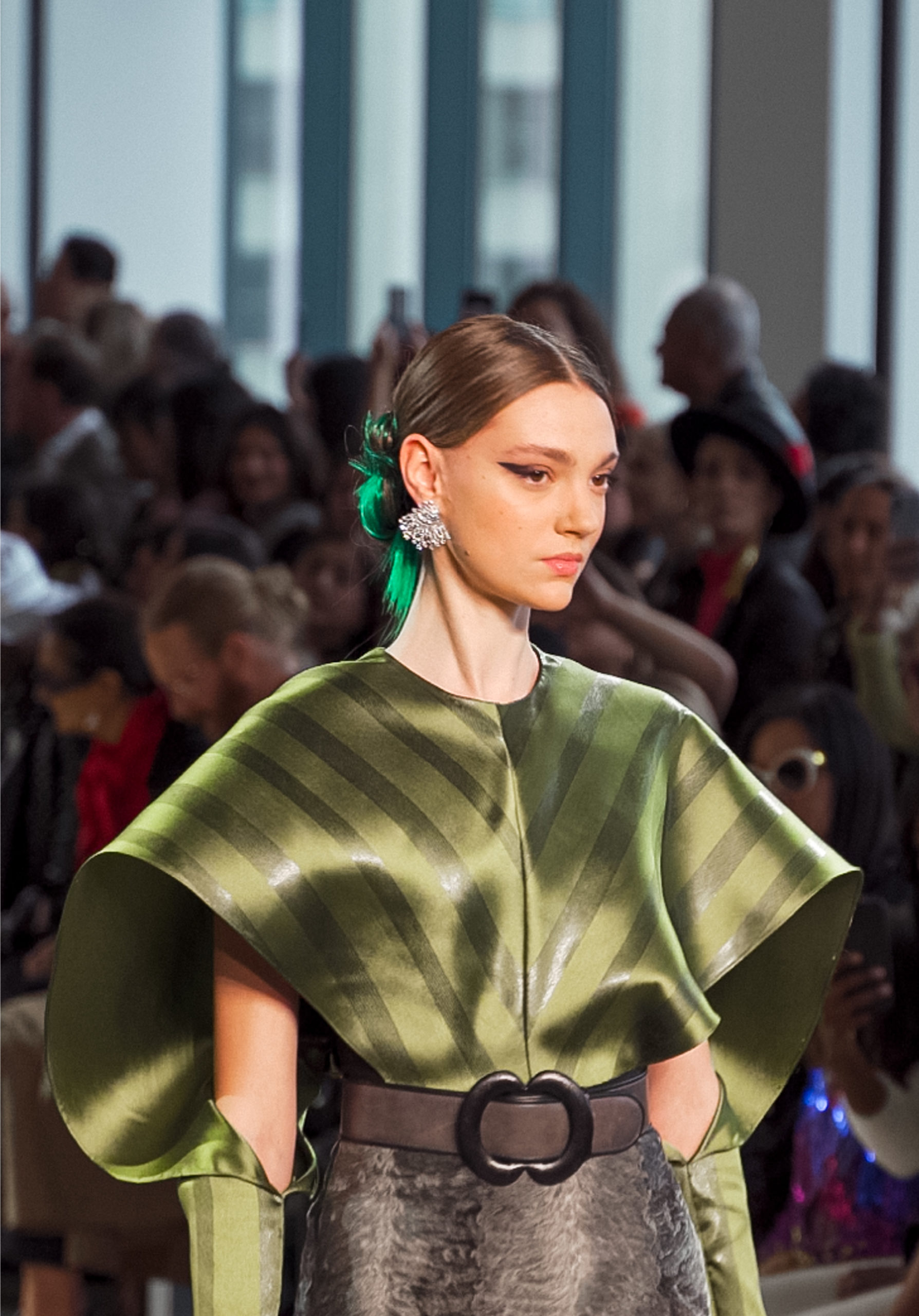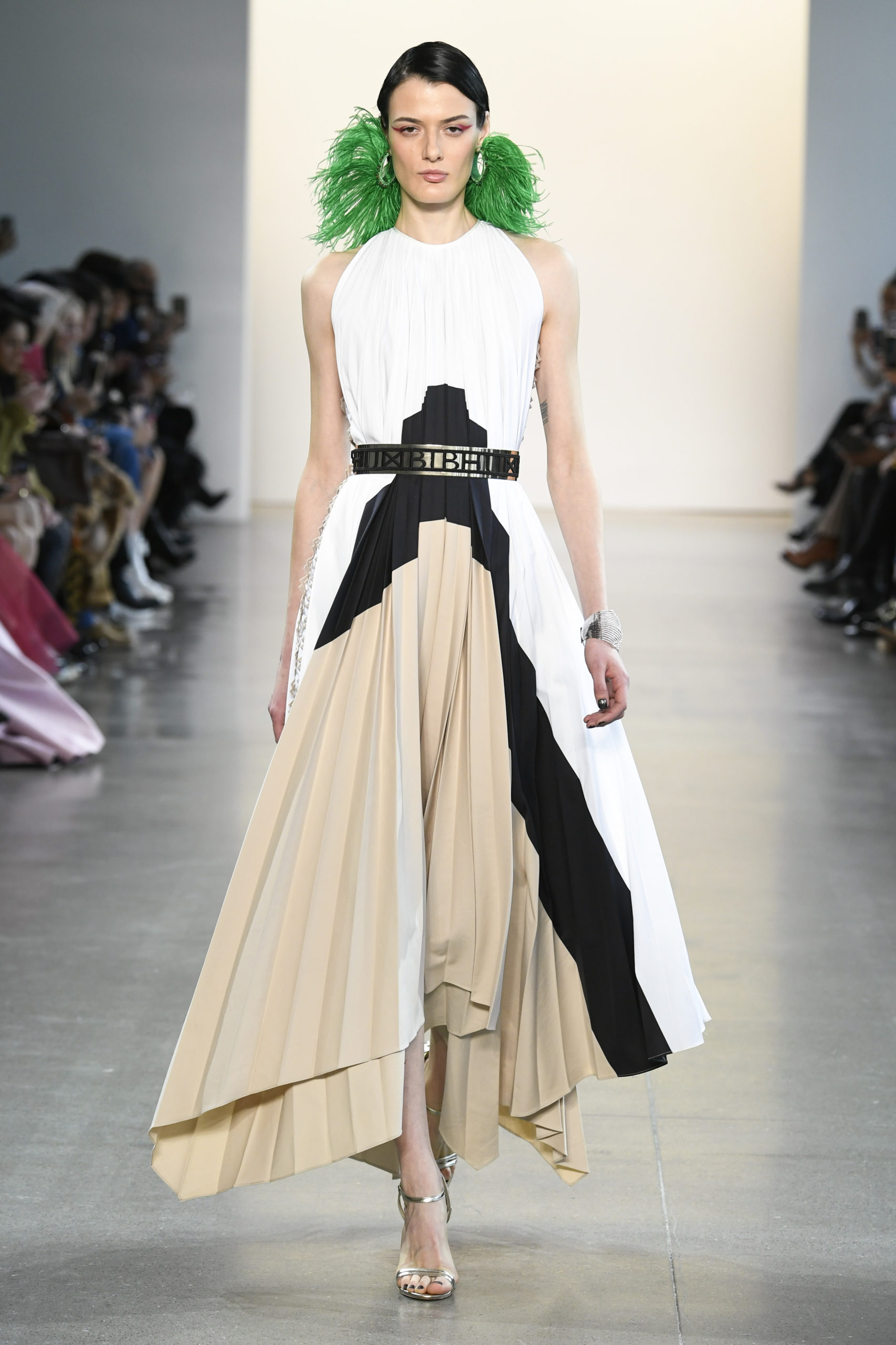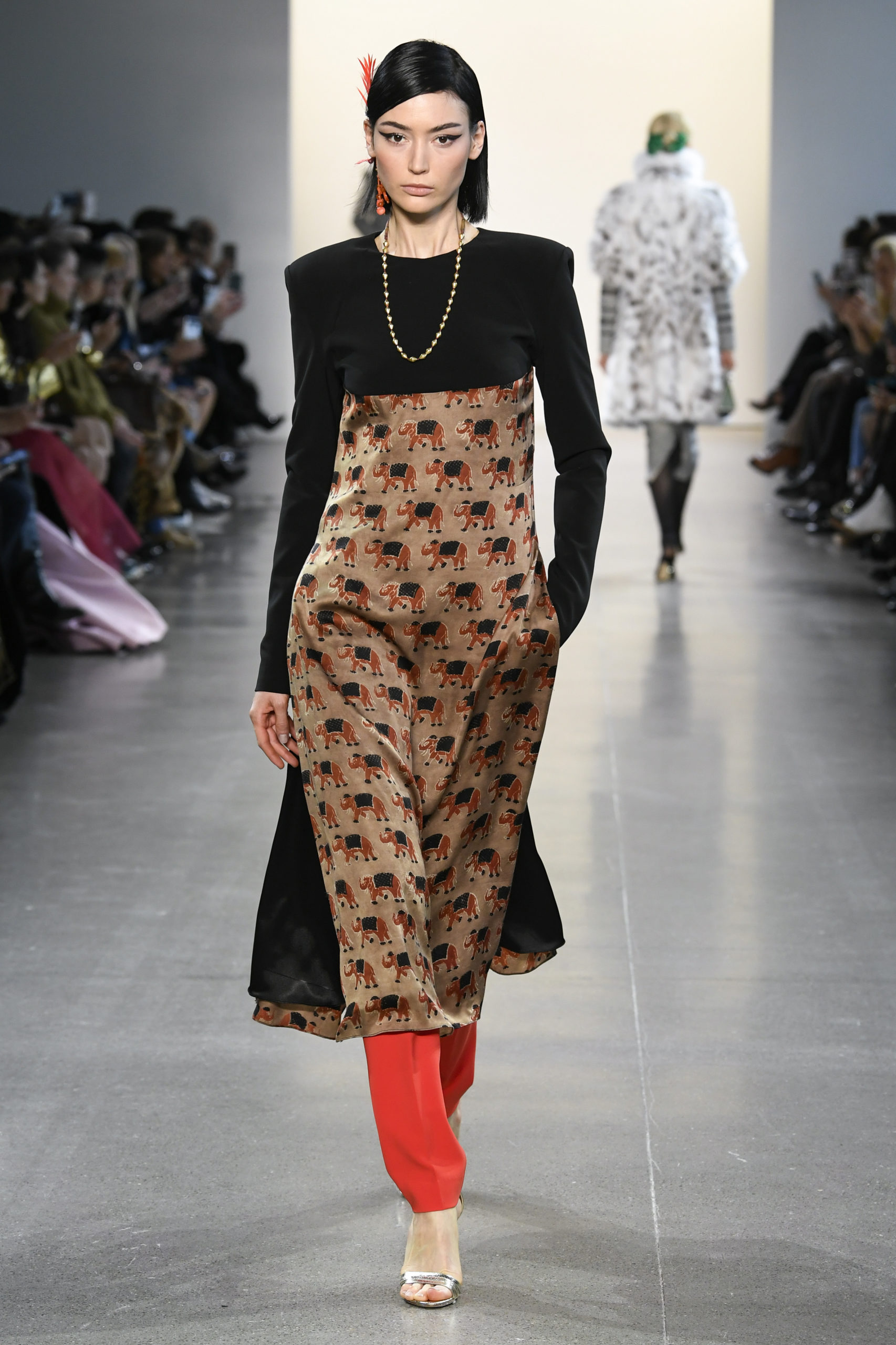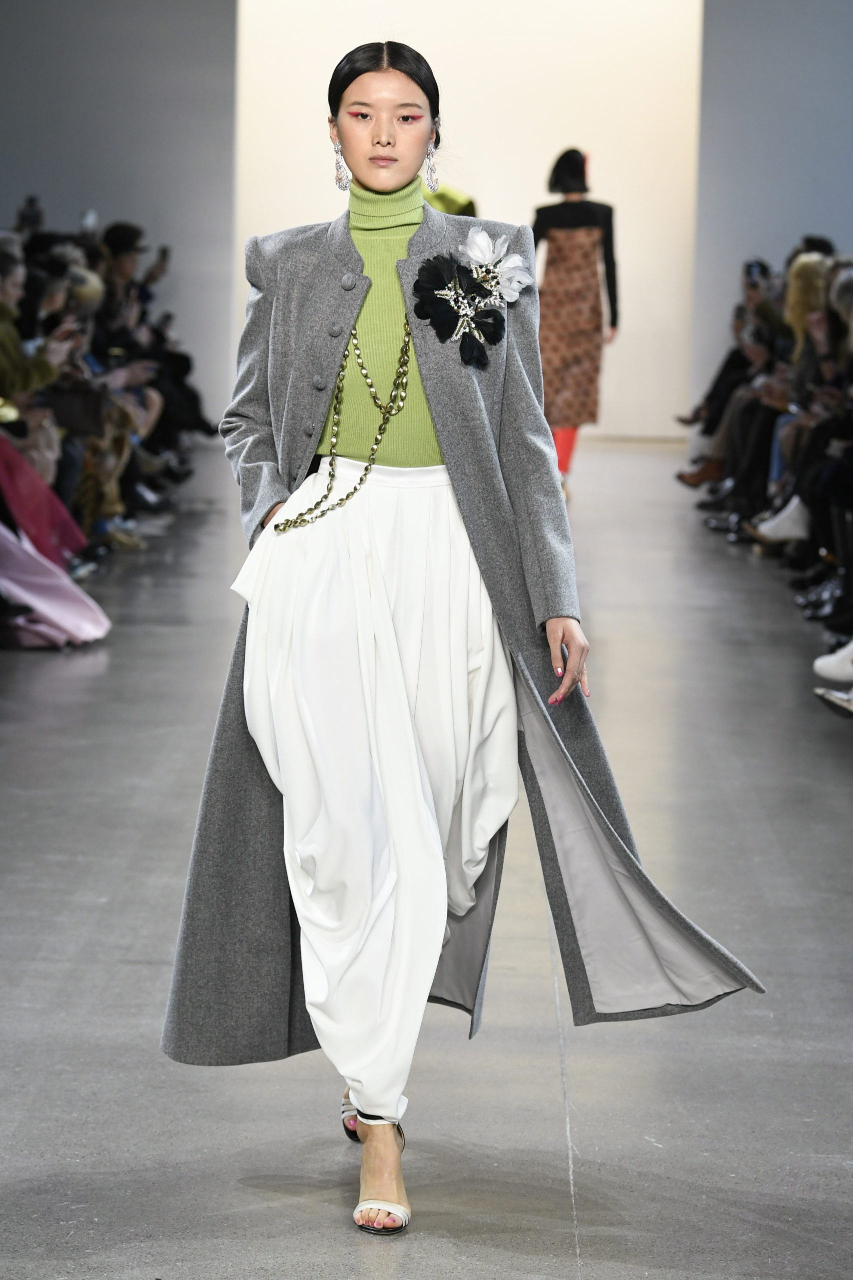 Many of the looks are accessorized with colorful oversized feather pieces, which Mohapatra created with close friend and luxury jewelry designer Ranjana Khan.
