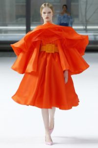 To do that, he has focused on bold colors and dramatic volume, without regard to what fashion season it is. Although the line is increasingly blurring, most fashion houses show distinct collections that tend to differ in colors (lighter and brighter for spring/summer and darker and richer for fall/winter) and fabric texture (heavier for fall/winter and more featherweight for spring/summer) depending on the season.