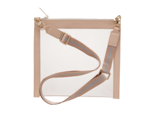GiGi New York’s Collins Crossbody is an affordable and fun answer to this most-annoying fashion challenge. The Game Day Collection clear bag with Vachetta leather trim in beige or black is the result of a collaboration between GiGi and lifestyle blogger Collins Tuohy Smith of “Collins Closets.” The stylish bag in PVC clear plastic has the option of personalization with up to three letters. And for an $25 extra, above the $148 price tag, you can select a fringe tassel in your team’s color.