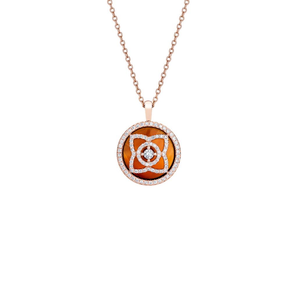 The Enchanted Lotus Collection embodies a mysterious delicacy, inspired by the Lotus flower, which is a symbol of eternity and purity. The holidays bring the arrival of four new pendant designs, ranging from the classic openwork style or with an inlay of Mother-of-Pearl or Black Tourmaline for a modern look. A delicate diamond micropavé motif captures the absolute essence of the Lotus flower in all its glory.