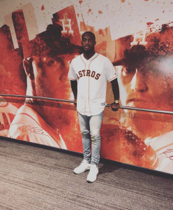 The label began when Jackson had the opportunity to design caps for the Texans. He created a fitted and a snap back version and labeled them Fly Guy. He says that was the gateway to his clothing line which for the moment is limited to a high-style sweatsuit in cotton terry in three color ways. They are available online here.