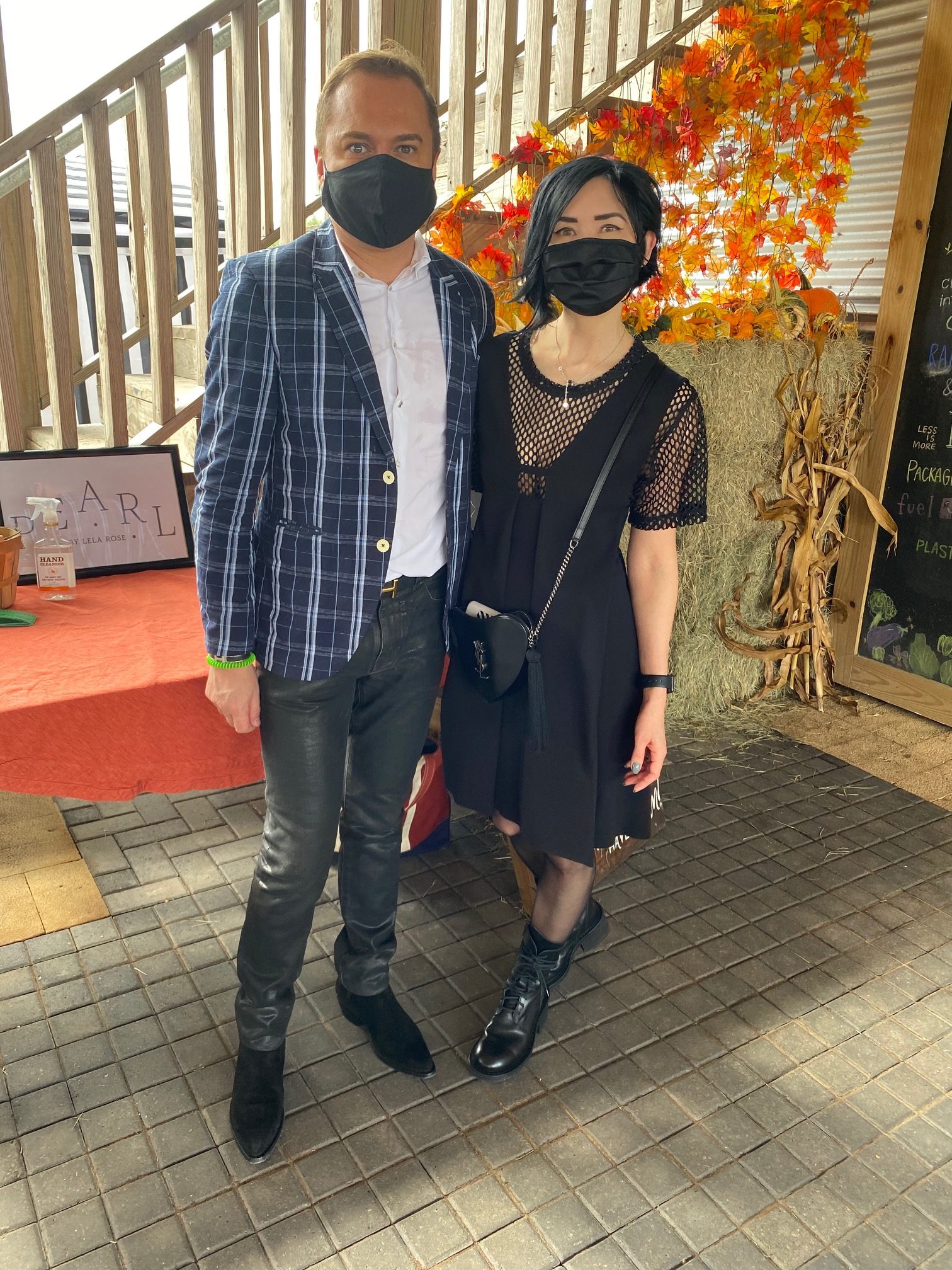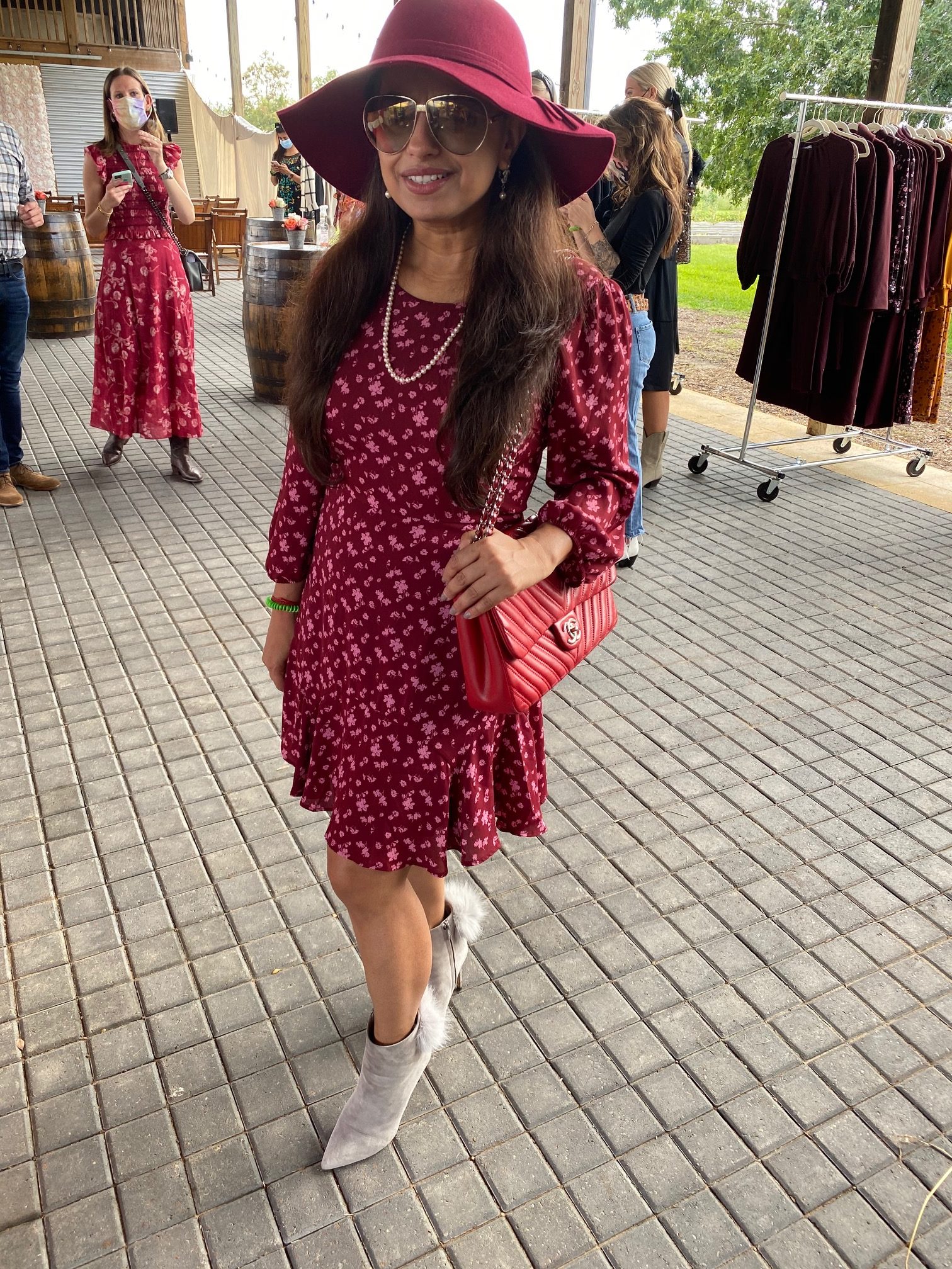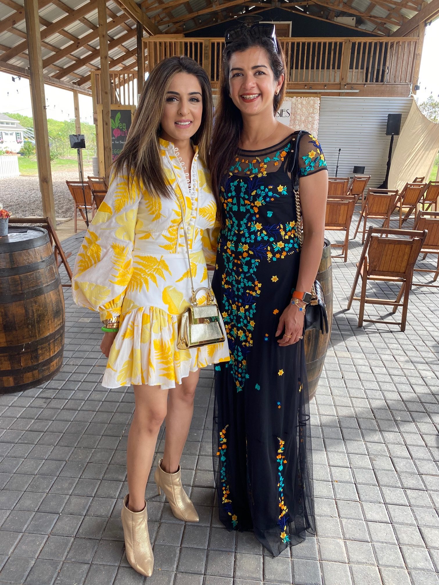 Racks of the designer’s latest creations, classic and beautiful, hung from racks on all sides of the barn, many of the looks just having arrived at Tootsies only the day before. That’s when chair of the now 2021 Fashion in the Fields fundraiser Sippi Khurana picked up her stunning day dress which was floaty to ankle length.