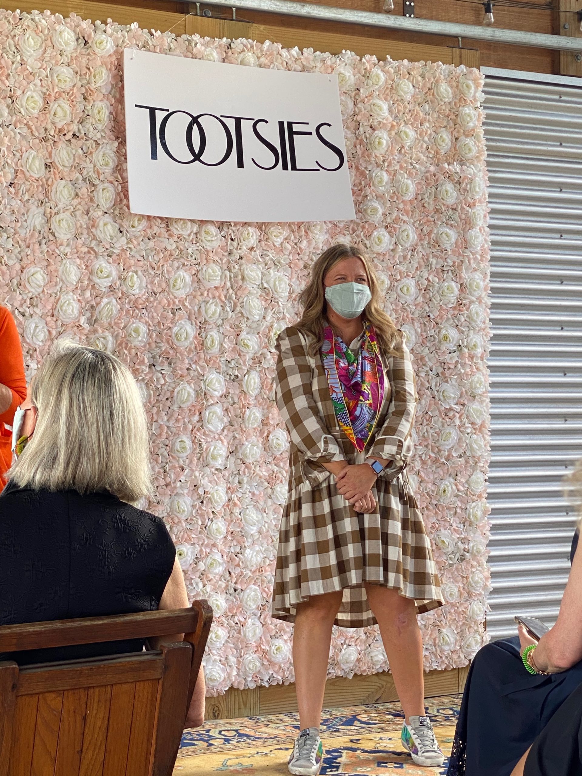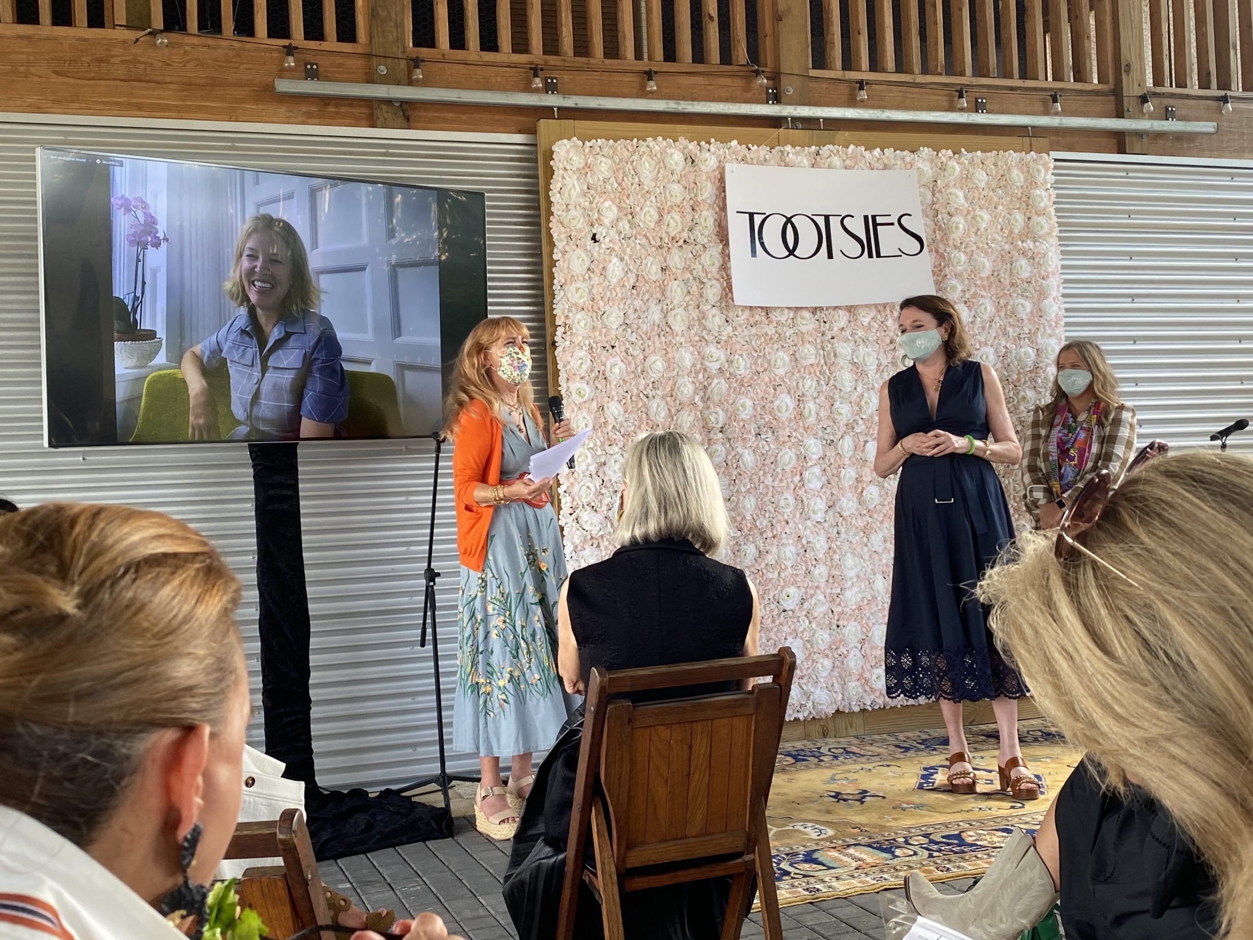 The event was a fill-in for the highly successful Fashion in the Fields fundraiser held at the farm each fall. On this day, guests were limited to patrons and underwriters of the annual event. The 2020 Tootsies fashion presentation featuring Lela Rose was postponed until fall of 2021 due to the pandemic. Yet, her fashions were there and she would be before the event ended.