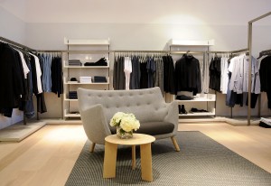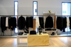 As opposed to courting a trend-driven consumer, the line appeals to a presumably slightly older, more sophisticated demographic. Its clean lines and modern architectural silhouettes are a much welcomed breath of fresh air for customers looking for well-designed quality garments at moderate price points. Perusing the store is a venerable feast for the sensible shopper’s senses with weighty cable knit sweaters at $79, camel wool-mix coats for $179 and unique art-inspired accessories starting at just $5. Racks of sleek, structured pieces and fabulous neutrals in Norwegian- and Icelandic-inspired colors make the collection feel simple, if not safe, in the very best sense. The absence of labels, on primarily solid, mix-and-match hues, imbues an au courant aesthetic that mirrors that of the space itself.