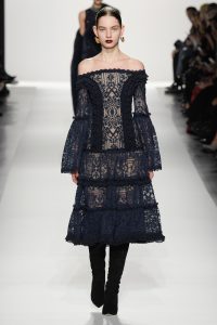 The fall collection is inspired by centuries-old techniques that connote power and authority, and how these visual dynamics played out in religion, entertainment and the aristocracy in Spain. The regal romance of corsetry, matador costumes, diaphanous blouses and emphasis on the torso via constructed patterns and boning, all make appearances —and is sexy, extravagant, and dazzling.