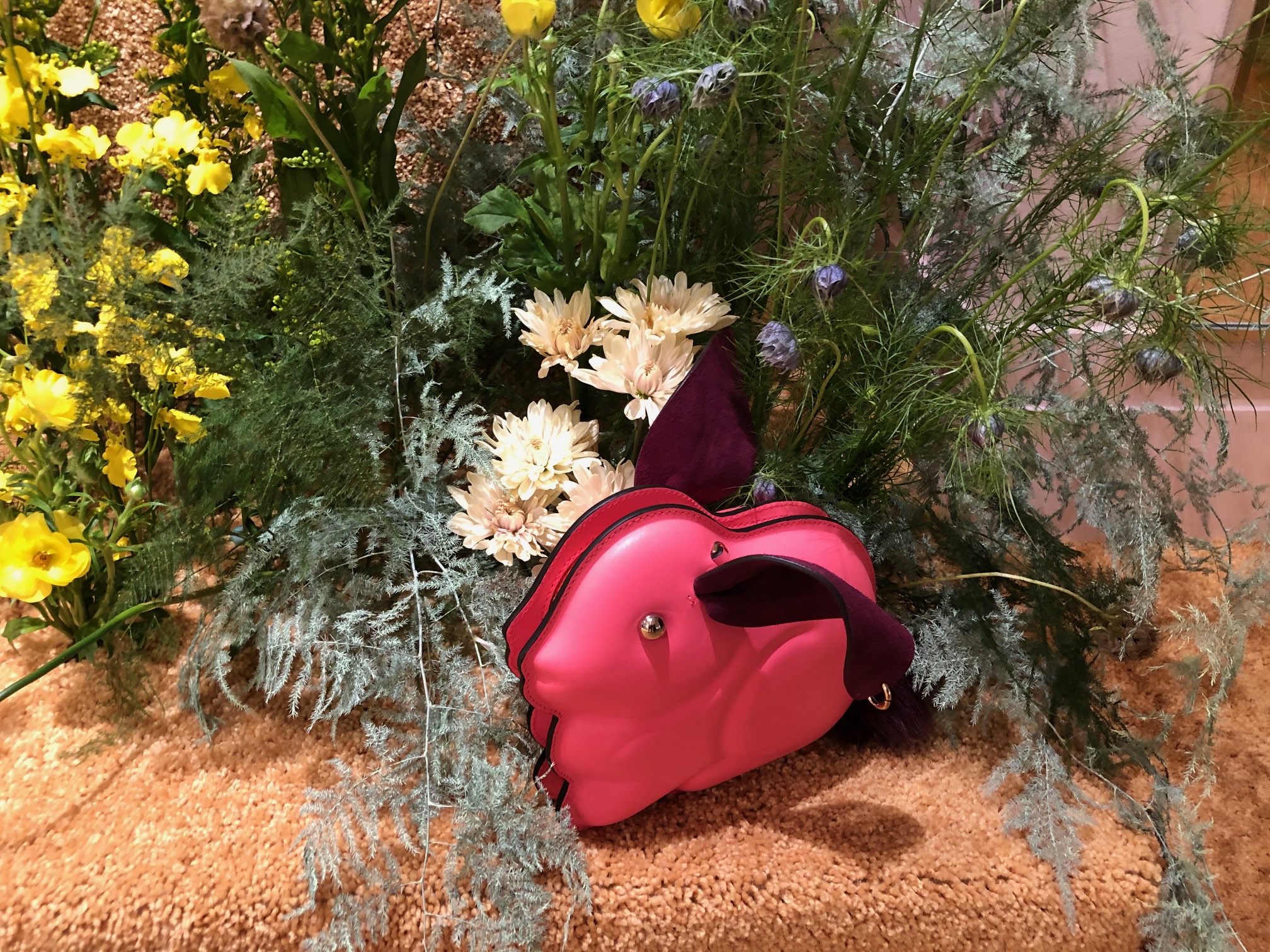 Kate Spade is known for its novelty handbags, so for her seventh collection, Glass sprinkled an array of new offerings around the Alice in Wonderland setting. Hidden in a garden of flowers and greenery were a handbag in the shape of a red-and-white toadstool mushroom, bunny bags in shades of pink and yellow with contrasting ears, and a handbag that resembled a metal-studded hedgehog (although it probably looks more like an armadillo to anyone from Texas).