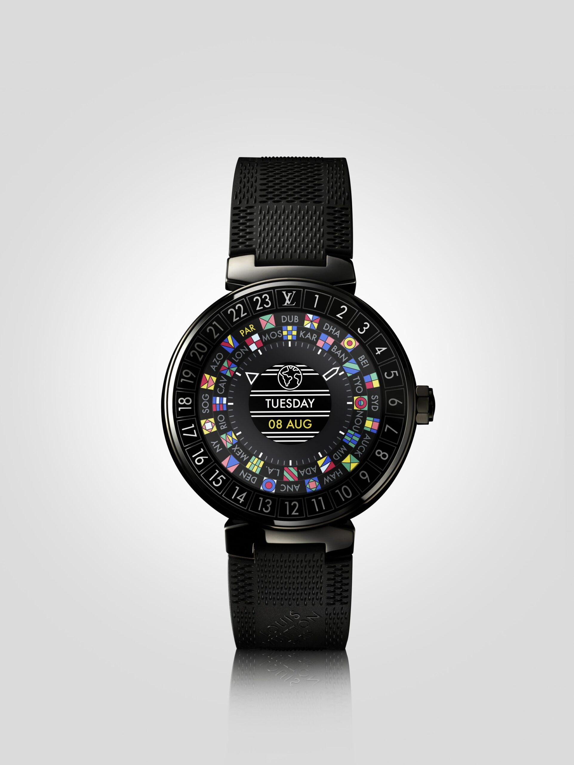 As the maison notes explain, “This is a timepiece that was conceived in Paris, with a case made at Louis Vuitton’s manufacturer in Switzerland, which deploys technology developed in California’s Silicon Valley – and for the very first time can be used right across the globe, including China.”