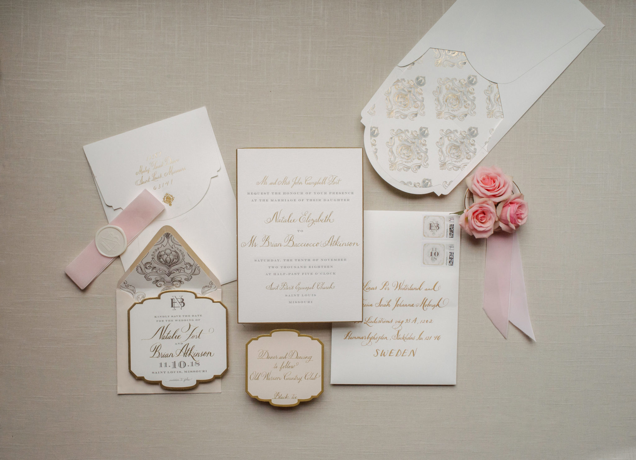 It’s fitting, then, that when the time came for Atkinson to pop the question, six years after he and Fort became college sweethearts at Texas Christian University, he worked with her father to execute the perfect surprise proposal over Christmas with her family in Cabo San Lucas, their favorite vacation destination. The couple considered Cabo venues for the wedding before deciding to host the affair in the bride’s hometown of St. Louis.