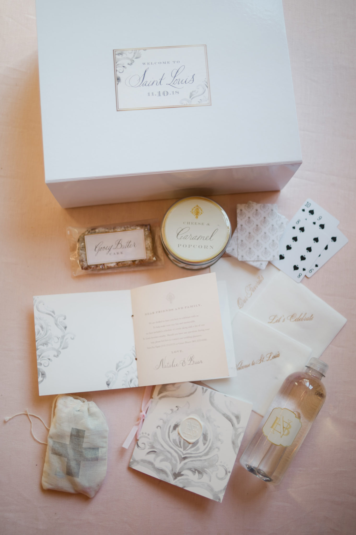 When the two arrived at The Old Warson Country Club to preview their jaw-dropping reception space and enjoy a special private dinner before guests arrived, they were greeted by their own smiling faces — printed on fondant atop specialty cocktails by The Grand Bevy.