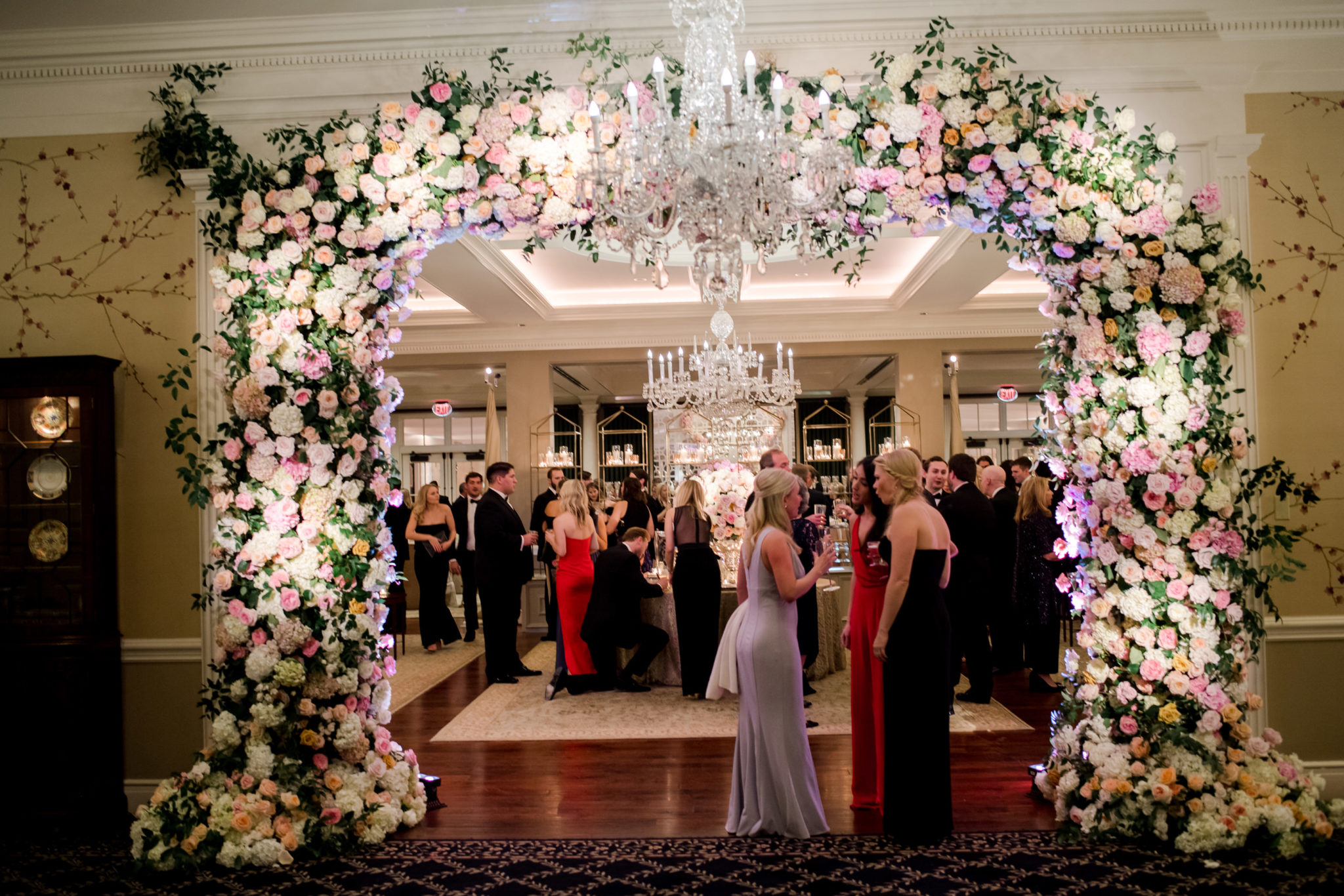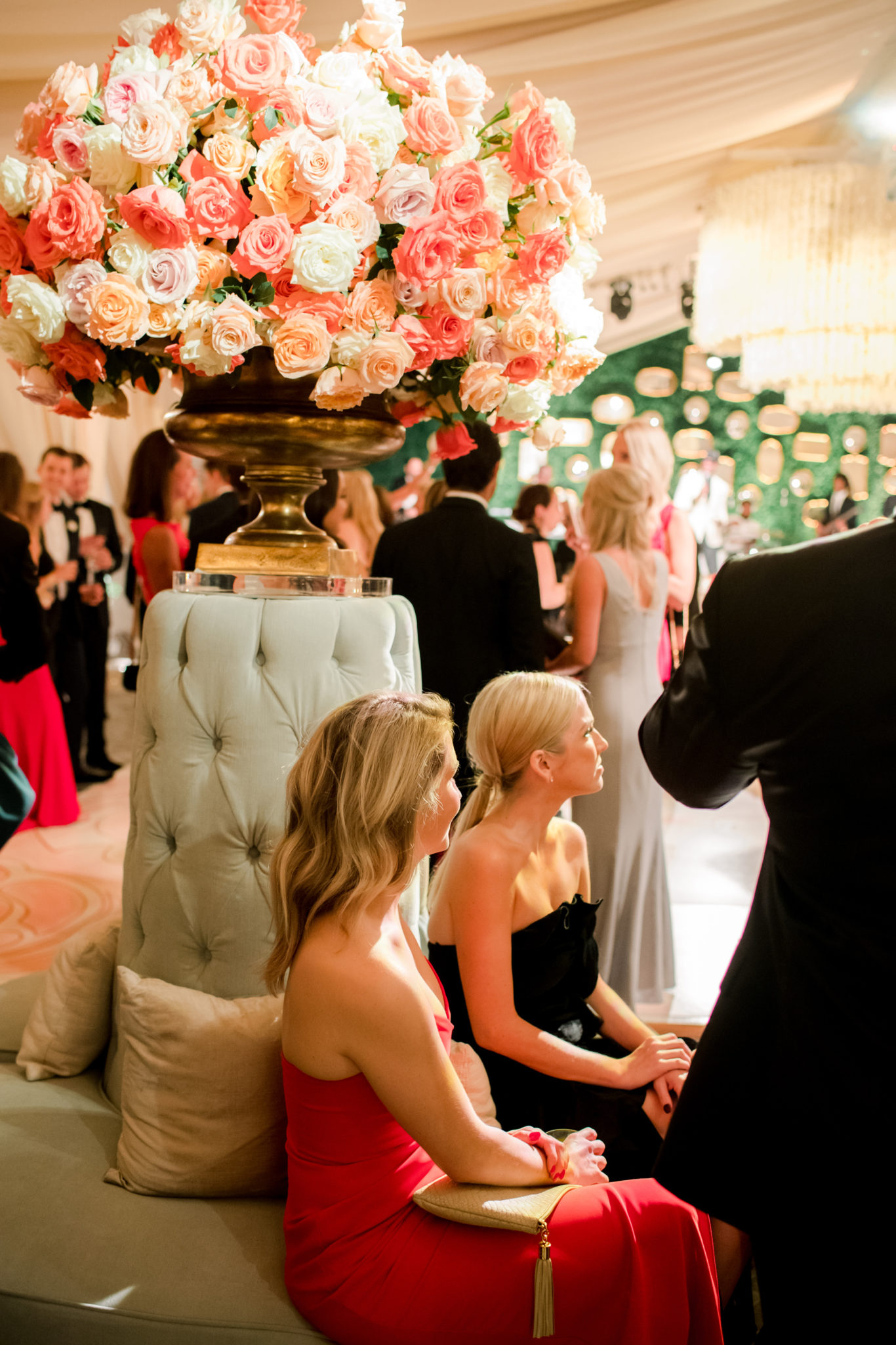 But there was one more surprise in store, this one for the guests. As they waved the bride and groom off in their 1960 Silver Cloud II Bentley Rolls-Royce, waitstaff passed Brandy Alexanders along with notes that read: “The fun continues. Join us in the ballroom.”