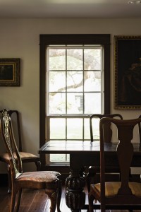 While some of Masterson’s antiques and art made the cut, other pieces were divvied up among her children. The resulting rooms devised by Holley cannot be described as spare, but as a perfect balance of talismans —a collection of European silver vessels here, an 18th-century portrait there — and treasures that seem anchored in a time period approaching 1690 to 1730, the era of William and Mary, throughout the living room, with a few touches of Queen Anne in the dining room. Stalwart wooden chairs with flourishes of turned baluster arms and rails, and, in many cases, original needlepoint upholstery, cozy up to gate-leg turned tables. Paintings of the era — a brooding landscape or still life throughout the main hub of the house — are enlivened by works such as an early Mexican colonial embroidery, inherited from her own family.
