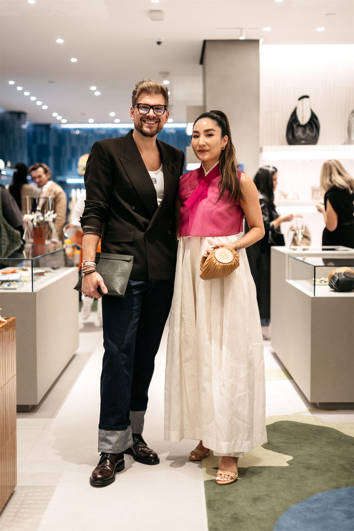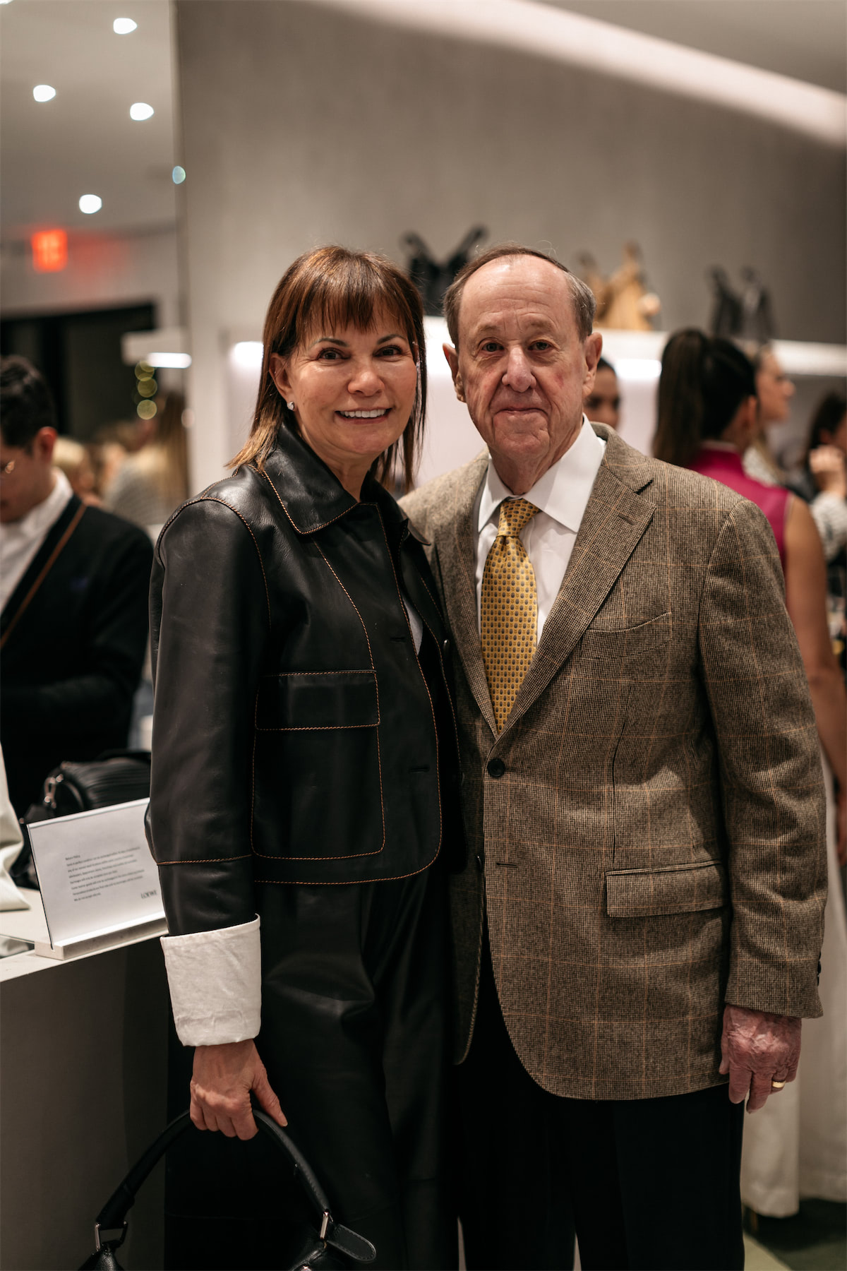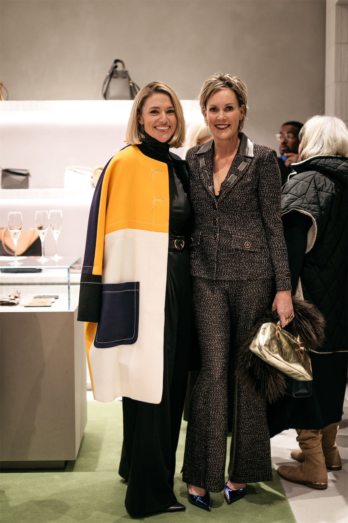 The evening began with private shopping in the sleek new space, located in between the newly remodeled Veronic Beard and Akris – which also happened to be having a party that night hosted by Joyce Goss. After checking in with the door attendant and grabbing a flute of champagne, those spotted shopping the brand’s signature puzzle bags and Loewe’s recent collaboration with the Kyoto-based ceramic studio Suna Fujita included Daisha Board, Nancy Carlson, Cary and Mark Deuber, and Ramiro Garcia.