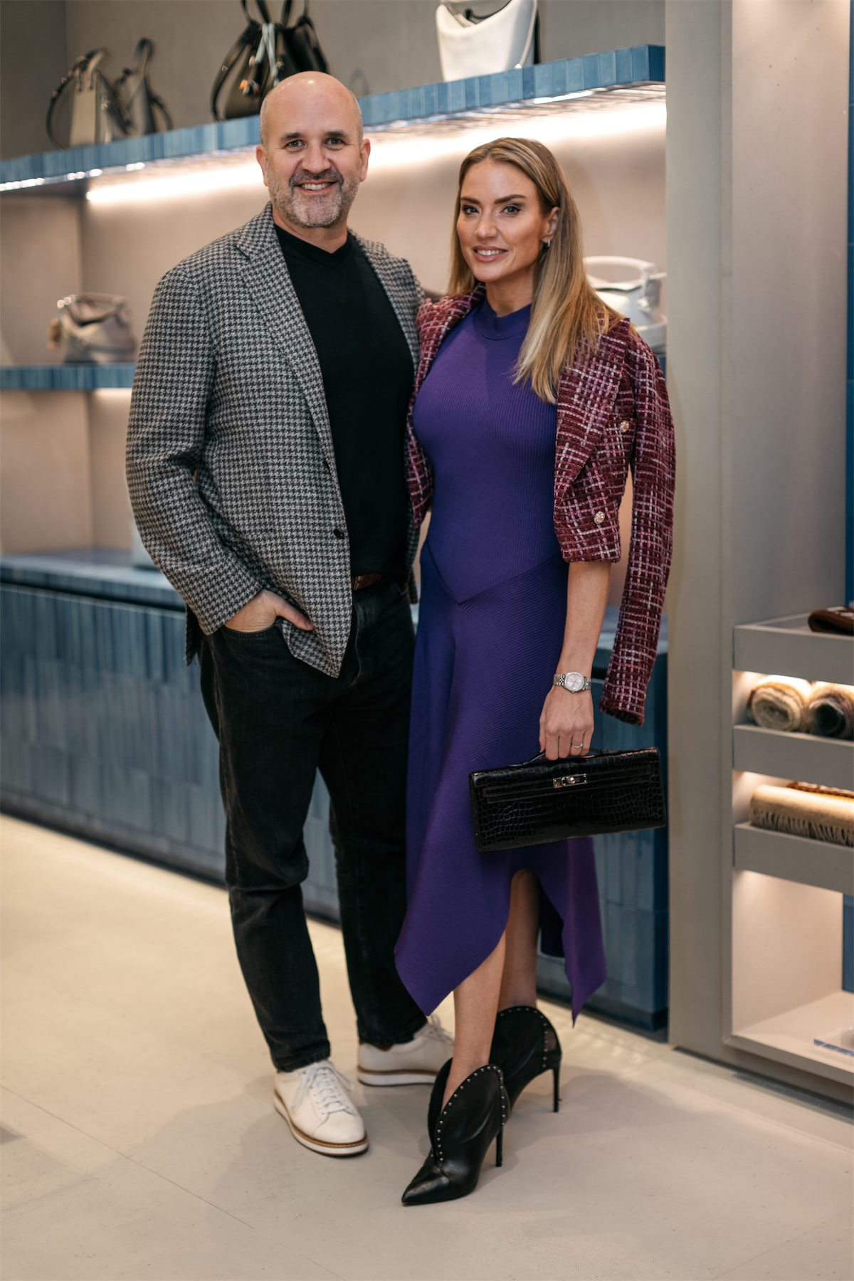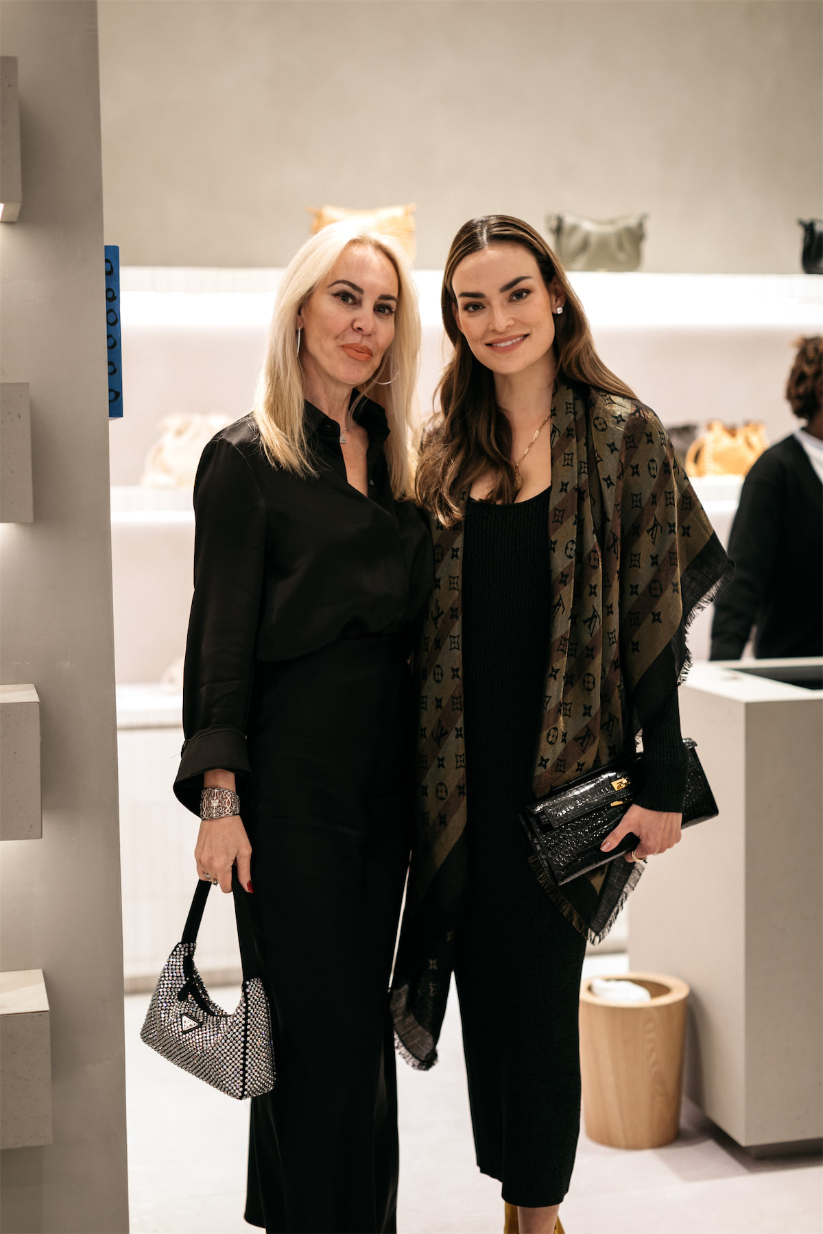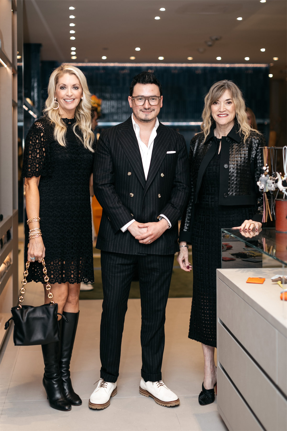 The evening began with private shopping in the sleek new space, located in between the newly remodeled Veronic Beard and Akris – which also happened to be having a party that night hosted by Joyce Goss. After checking in with the door attendant and grabbing a flute of champagne, those spotted shopping the brand’s signature puzzle bags and Loewe’s recent collaboration with the Kyoto-based ceramic studio Suna Fujita included Daisha Board, Nancy Carlson, Cary and Mark Deuber, and Ramiro Garcia.