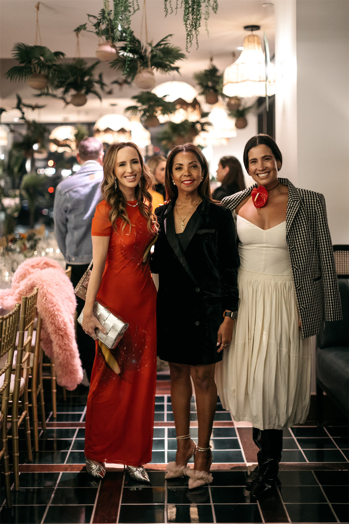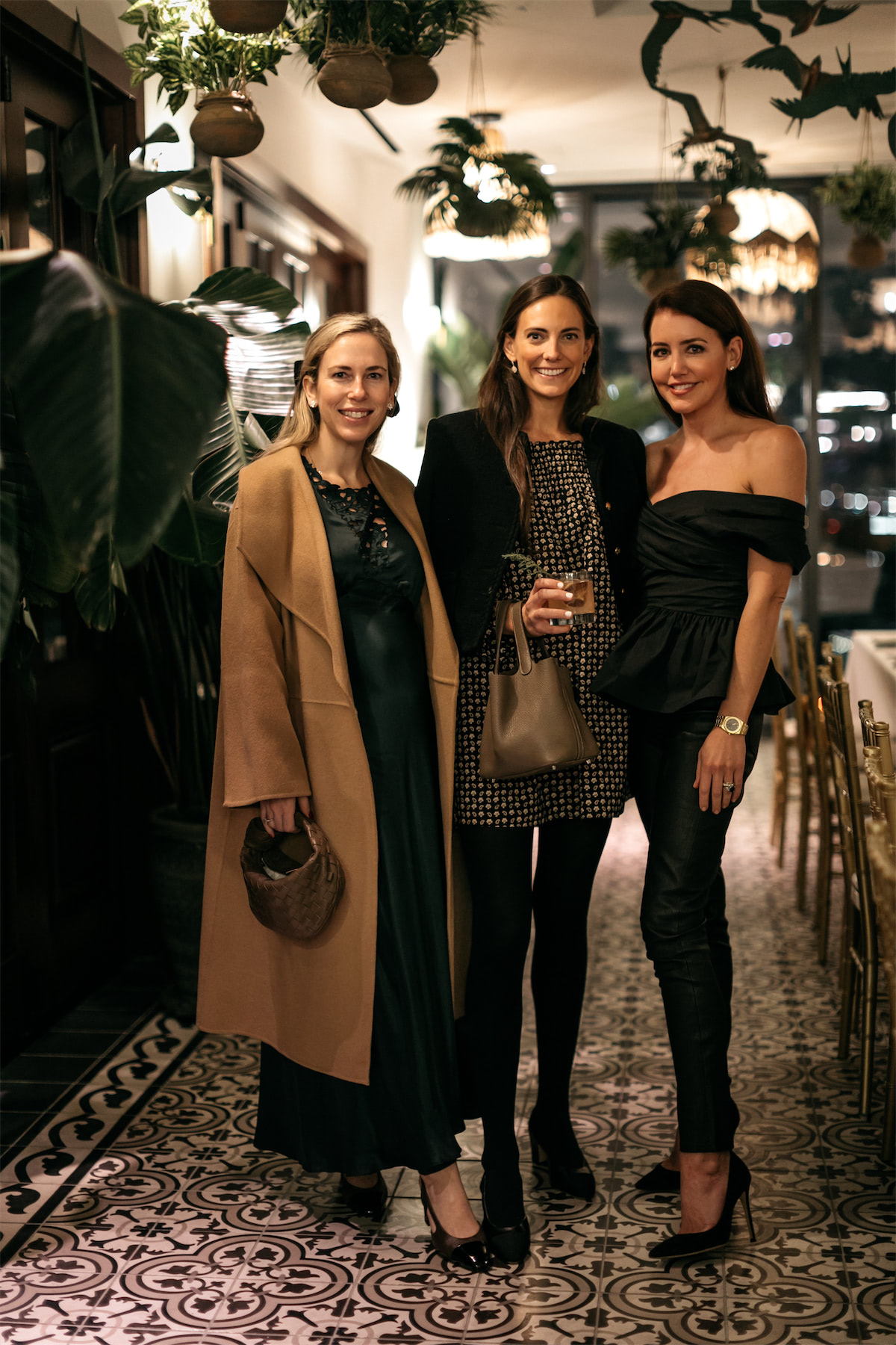 Post shopping, a select group was whisked via sprinter van to the newly unveiled Hotel Swexan. Several fashion standouts sported Loewe that evening. Rochelle Gores in a gray dress and black cocoon coat that I’ve begged (multiple times) to borrow. Bela Cooley flashed some green fringed Loewe heels. Zoe Bonnete was wearing a vintage number she scored on a Park House trip to Palm Beach from a place she couldn’t recall the name of. “I think Elephant’s Trunk,” Bonnette mused. “Something quirky like that.” And Christen Wilson and Kit Sawers looking straight out of an old-school MGM Christmas flick wearing short white faux fur coats.