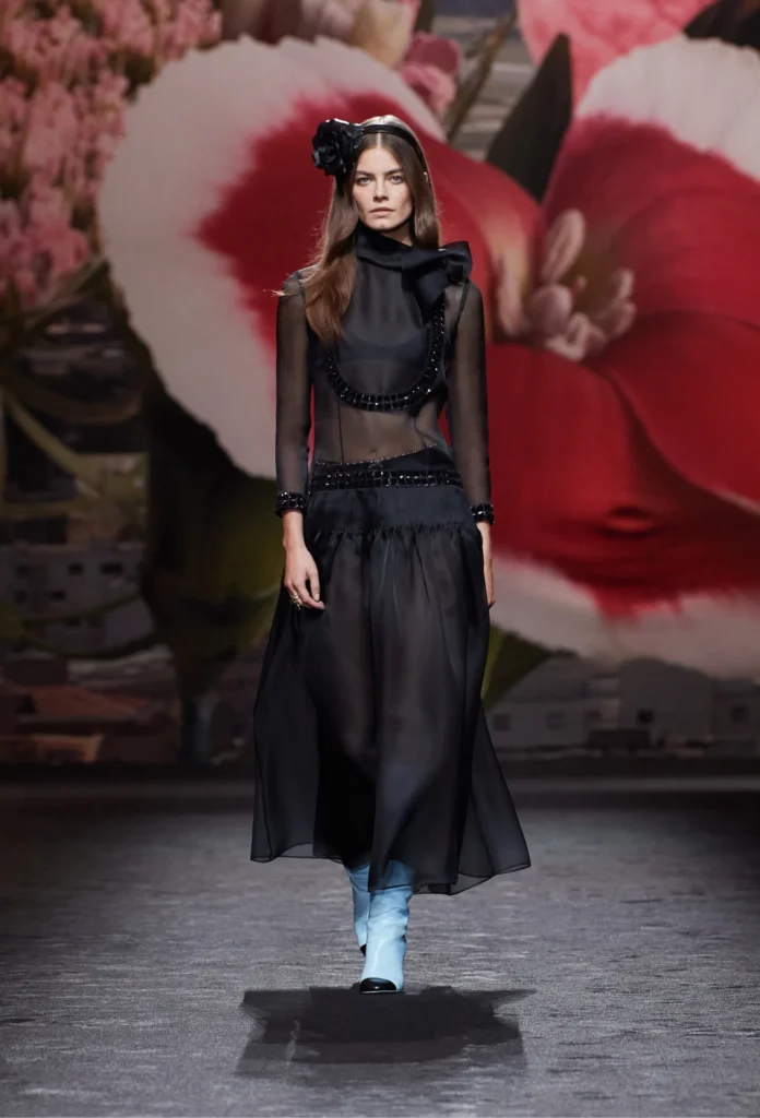 Black, a color that transcends seasons, adds a touch of elegance to any fashion style. Whether it’s a lace Michael Kors Collection dress, a sleek Louis Vuitton mini, a playful Stella McCartney polka dot ruffle number, a sophisticated Chanel silk organza stunner, or a daring leather Alexander McQueen masterpiece, the dresses of the season all celebrate the timeless appeal of black while embracing the lightness of the spring season.