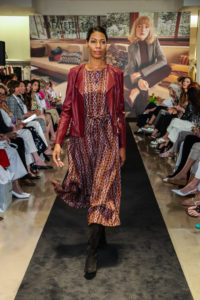 Style expert and trend forecaster Brooke Jaffe helped present the new collection to Dallas shoppers last week at Neiman Marcus NorthPark. Jaffe served as the Women’s Fashion Director of Bloomingdale’s for a decade, and regularly appears on shows like The Today Show and Good Day New York as an official authority on all things fashion. She hosted the Lafayette 148 fashion presentation, donning a patterned maxi dress and rust-red leather jacket.