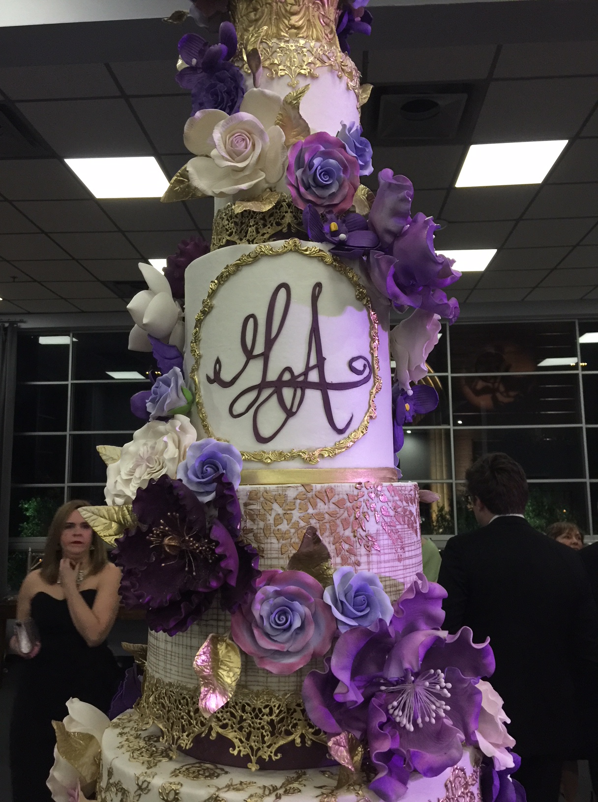 With sparkling chandeliers overhead, thousands of roses arranged by the talented Nino Shbeeb and the black-tie attired throng dressed to the hilt, the tableau commanded the highest kudos. Aside from the beautiful beaming bride and her mother, stunning in a Tom Ford gown, focal point of the reception was the glorious seven-tiered, 6-foot-tall confection by Nadine Moon of Who Made the Cake!