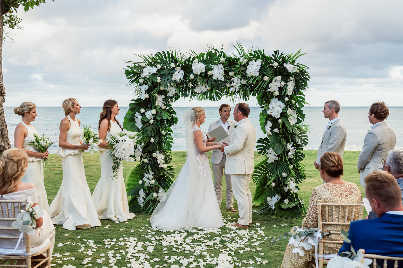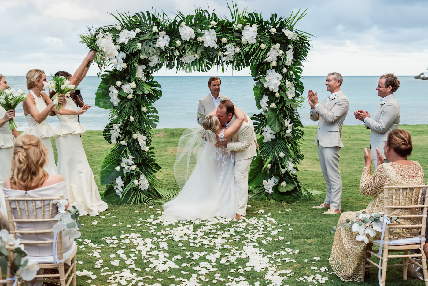 Caroline and Stewart got engaged in their hometown of Los Angeles and immediately knew a beach wedding was in the cards. After years of family trips full of oceanside memories, the couple knew the elegant Round Hill Resort along the Montego Bay was the perfect setting for their family and friends to watch them say “I Do.”