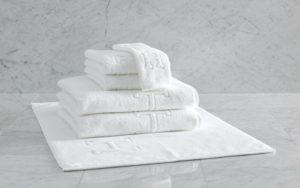 These decorative Auberge towels have a capital letter set in relief and they’re made from 100 percent double twisted terry. The bath towel is $54, hand towel $24, washcloth $9 and bath mat $45.