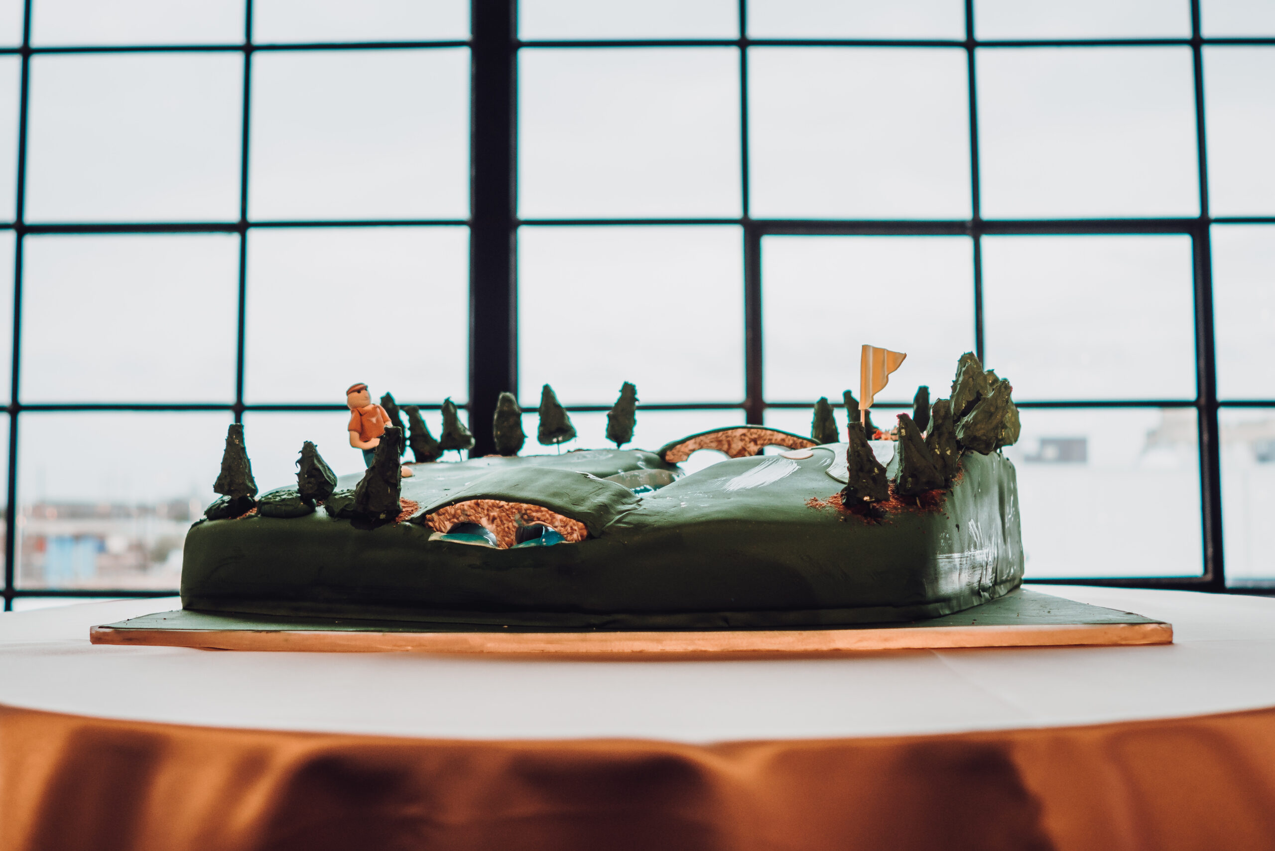 Groom’s cake: A chocolate rendition of the 12th hole at the Masters (Augusta National Golf Club)