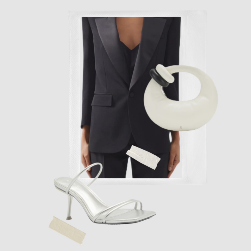 It makes a statement all on its own — so pair it with jeans, a fabulous pair of strappy-heeled sandals (like these Cult Gaia metallic ones with an intriguing sculptural heel), and a clutch. You’ll look ever-so art world girl on the go.