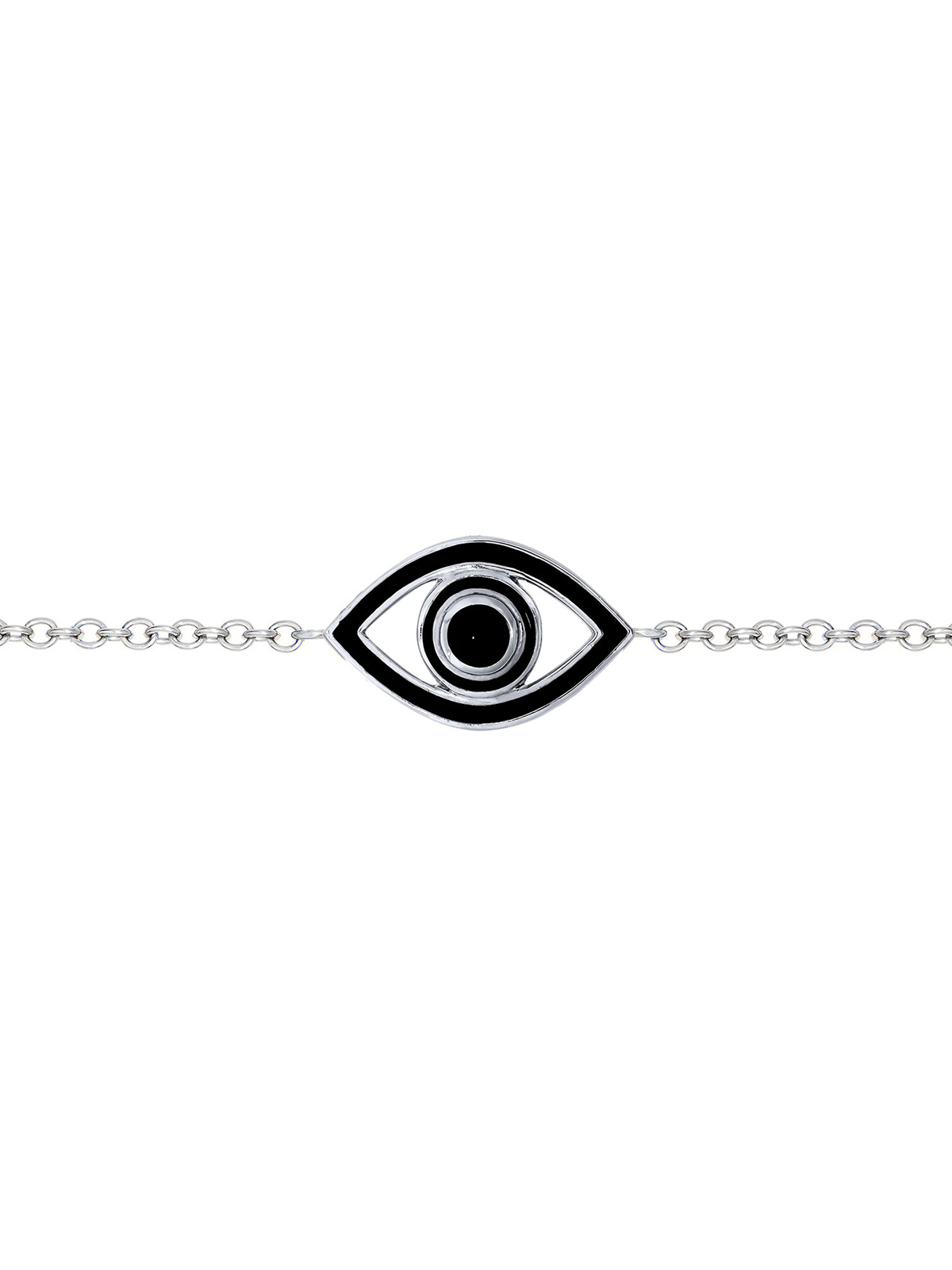 As a true symbol of protection, this black enamel evil eye adds just the pop your bracelet stack is looking for. This special petite Netali Nissim rhodium bracelet has an adjustable chain with an easy to take on and off lobster clasp. The most perfect, unique bracelet for any jewelry lover.