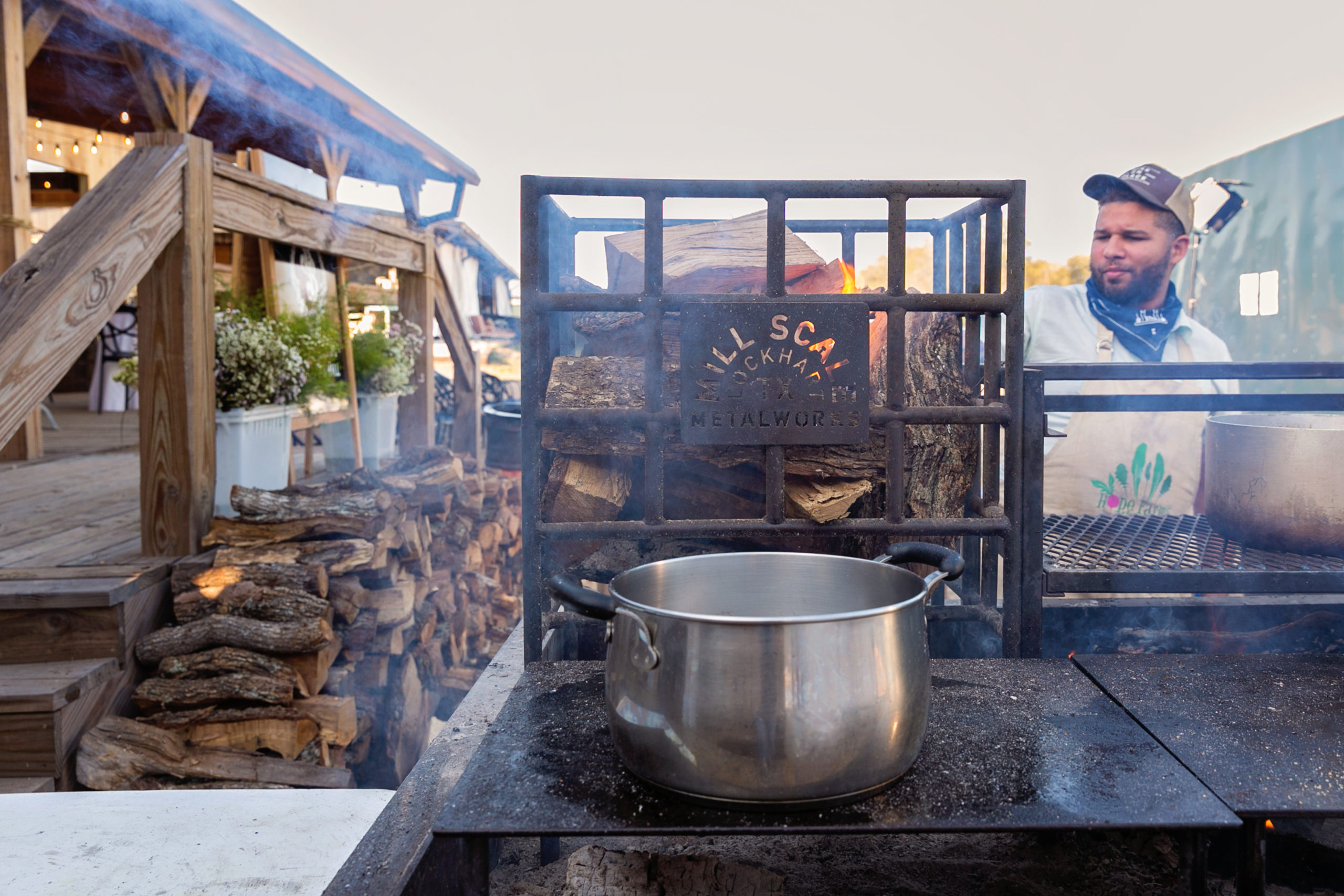Mid-morning on Saturday, a bevy of workman scurry through a yet-to-be completed building on Texas 237, a stone’s throw from Round Top, while at the back a wood-fired grill crackles and smokes as line cooks prepare for arrival of two topnotch chefs. As surprising as it might have been, this bustling scene at The Halles (formerly the Bone Yard) would unfold before sunset into a vibrant dinner tableau.