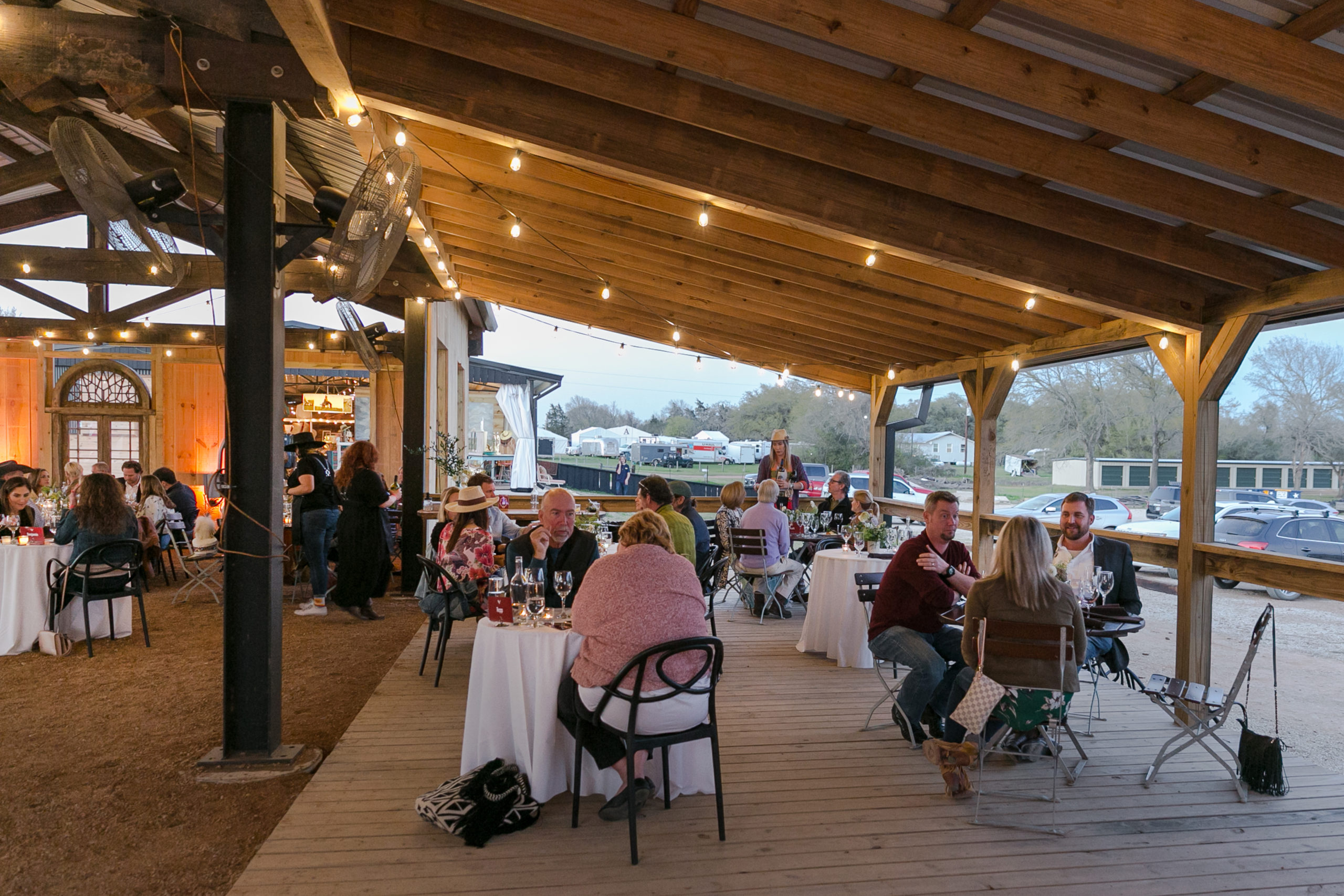 The 100 diners (the most allowed at any one dinner) arrived sporting typical Round Top finery as they gathered in the, yes, spanking new, mostly open-sided building that is sure to be the scene of many festive happenings. Each had ponied up $125 for the five-course meal and open bar, both of which more than met the highest expectations.