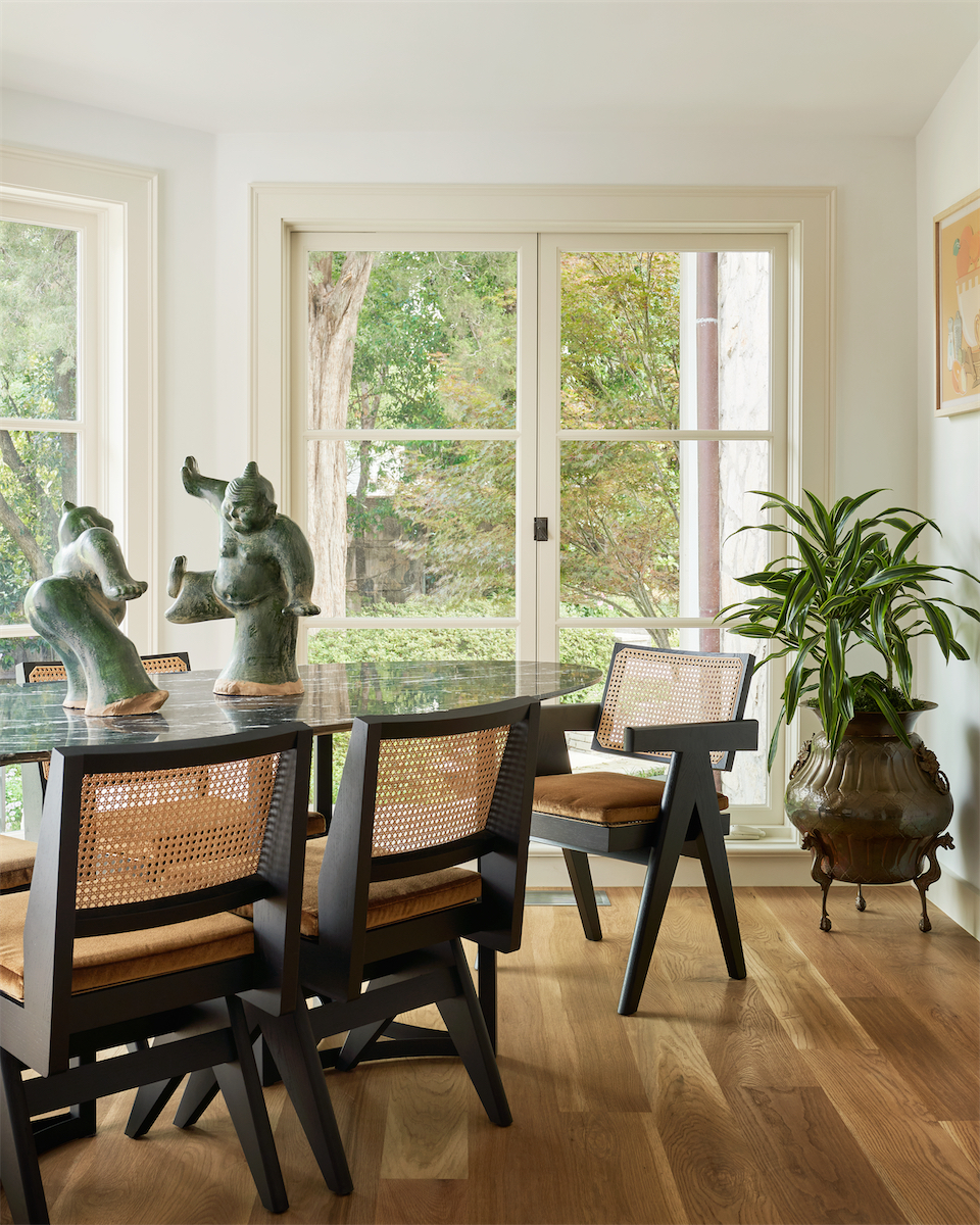 The current owners — a couple with two grown kids — had been living in the house for a decade before taking the plunge in 2021 to preserve and refresh it. “She wanted to be respectful of its history, but it also needed to be functional for the family — it was about balancing the two,” says Vanderford, principal and founder of interior design firm Studio Thomas James. The kitchen and bathrooms hadn’t been updated in decades, while other rooms had never been touched — some with the original wiring inside the walls.