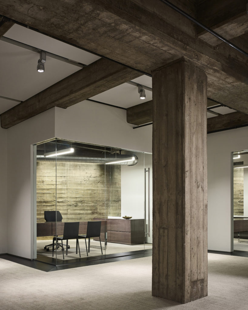 “Extremely nice balance of rough and smooth materials, concrete versus ceiling and wall panels. Good lighting and good art collection to lighten the spirit while working. If you make a mistake in the balance sheet, look at the art, and you will feel better. Wonderful working environment.” — Pietro Cicognani