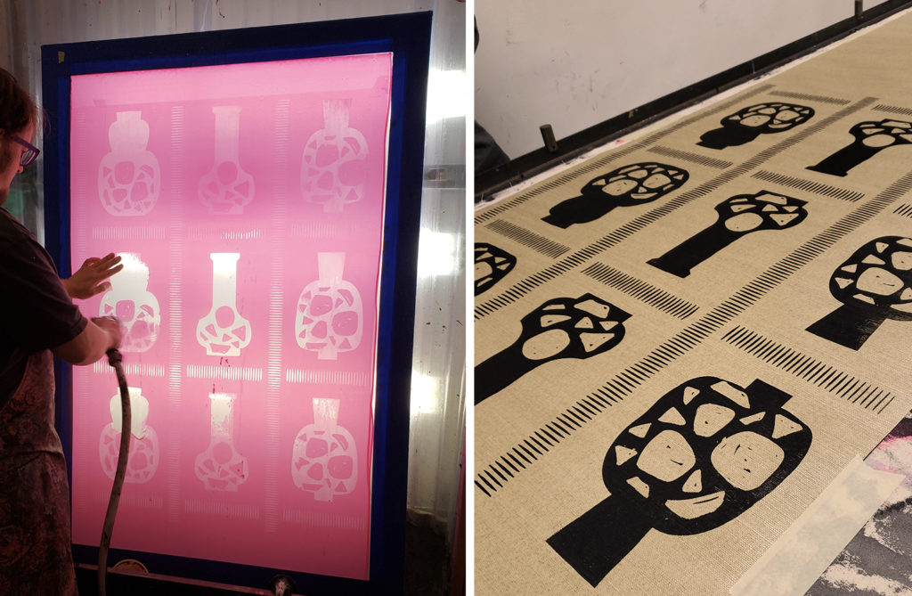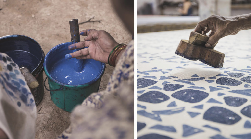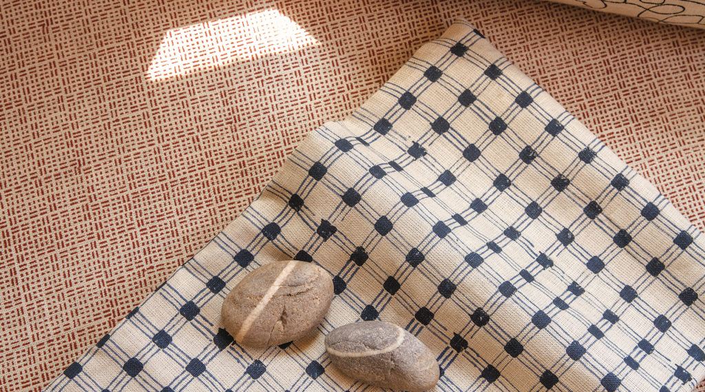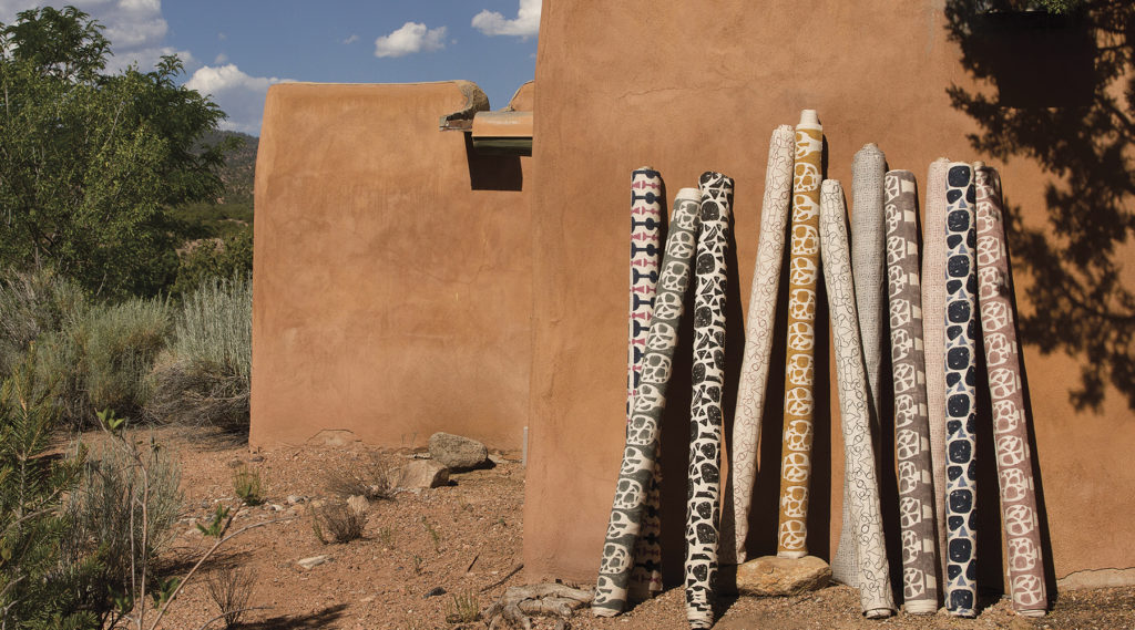 “The earthy colors, organic shapes, and natural fabrics do a wonderful job telling the story of these fabrics and their New Mexico inspiration. The use of hand-carved wooden blocks to apply the patterns gives these textiles a wonderful handmade quality.” — Brooke Giannetti