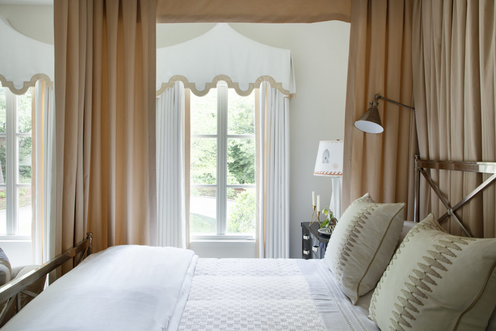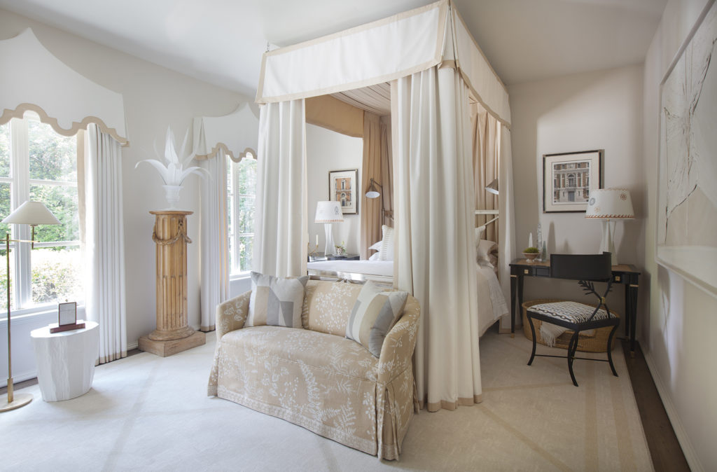 “We love the drama of a four-poster canopy bed in this serene white interior.”— Stewart Manger